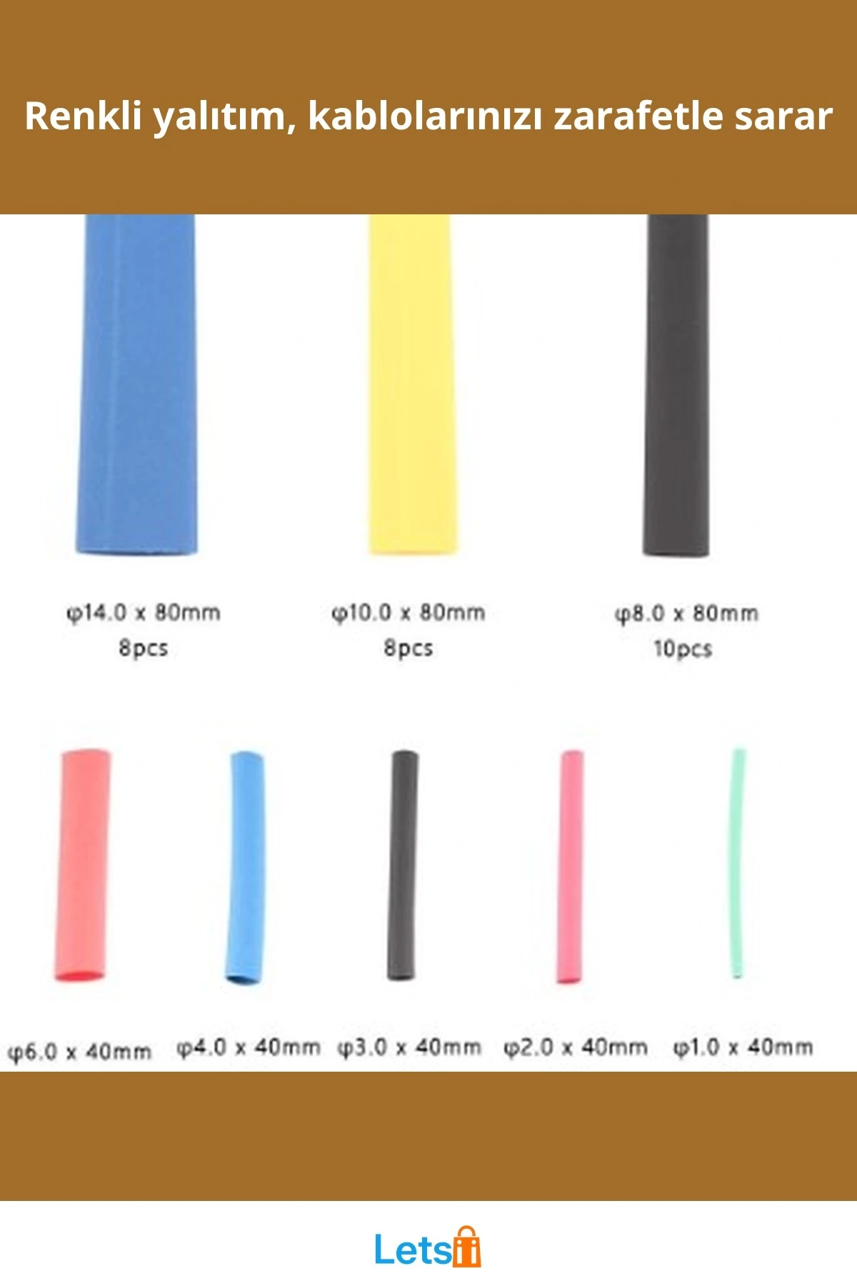 164 Parça Isıyla Daralan Kablo Koruyucu Makaron Seti
