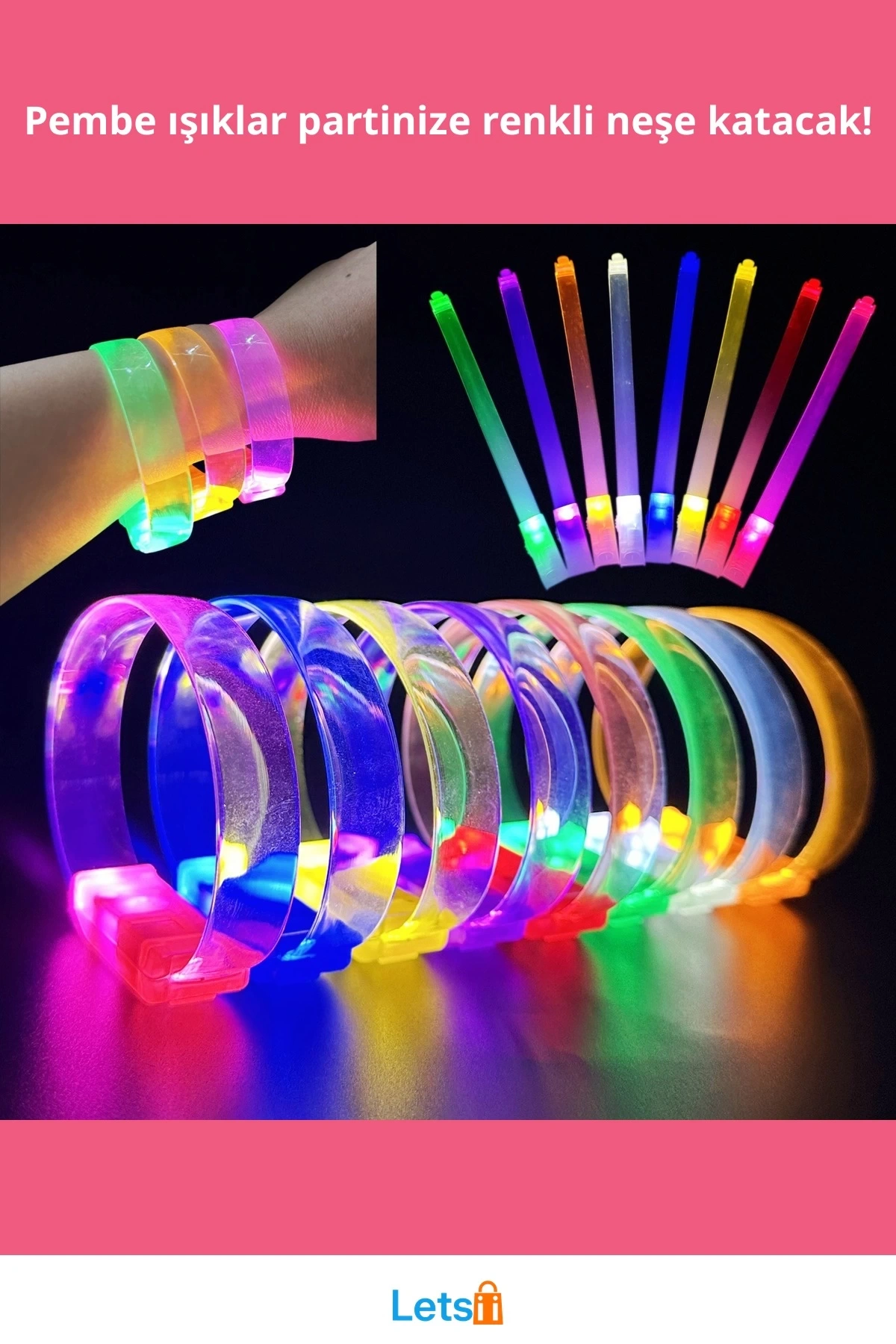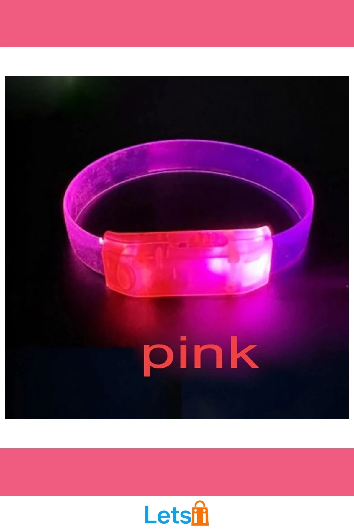 Pembe LED Işıklı Baskı Yapılabilen Pilli Bileklik Bilezik 1,5 cm
