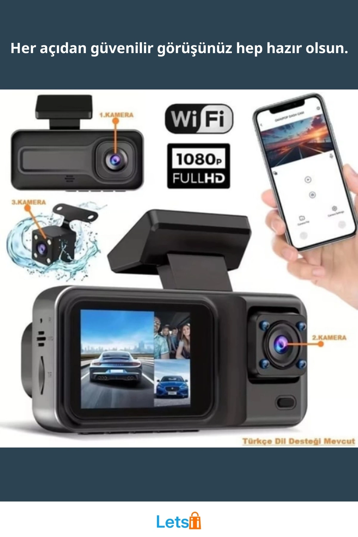 3 Lensli Full HD Araç Kamerası Gece Görüşlü Bluetooth Destekli