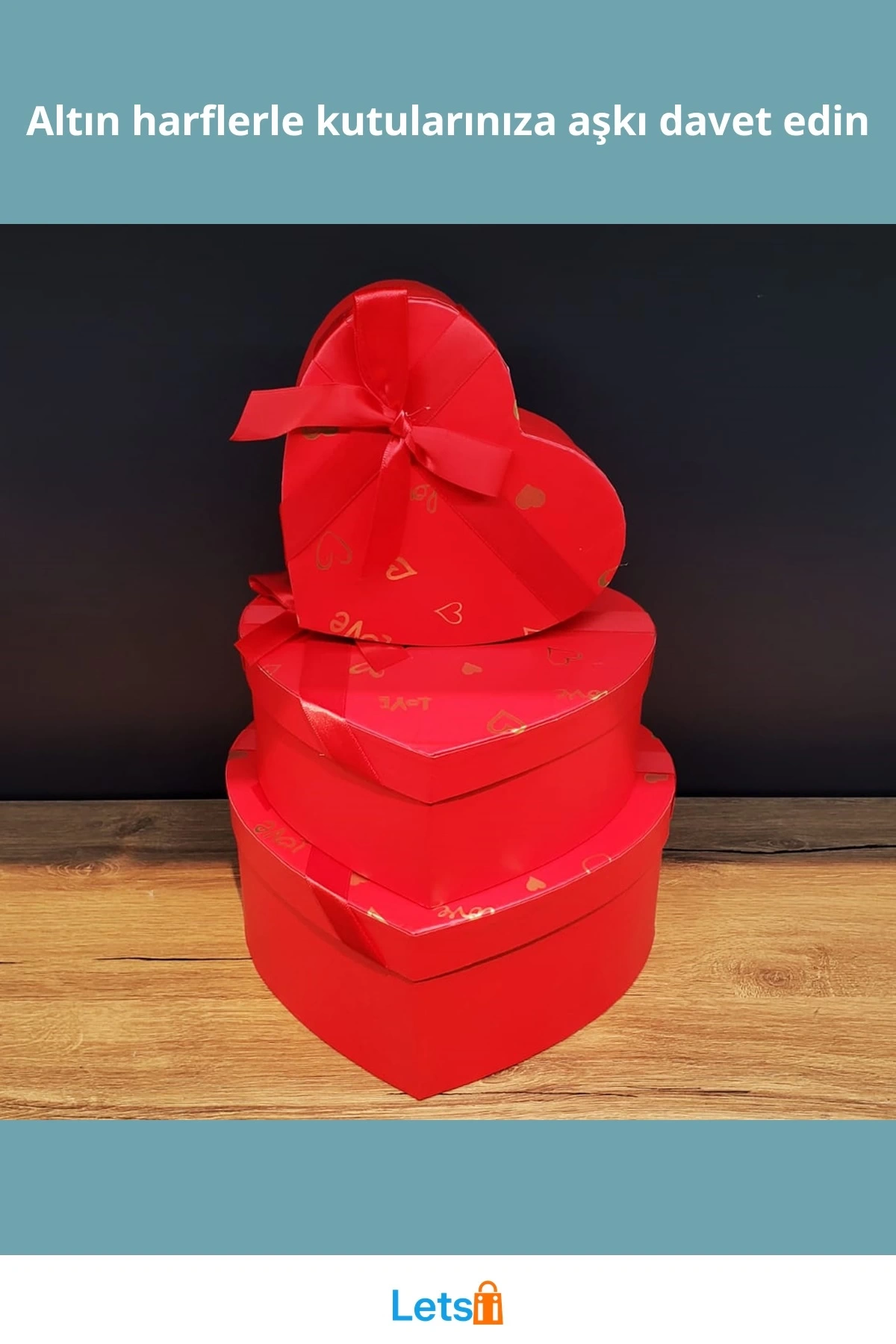 3'lü Kırmızı Kalp Desenli Hediye Kutusu Seti