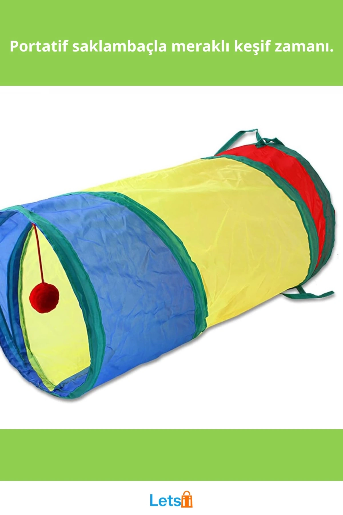 Renkli Dayanıklı Kedi Oyun Tüneli Asılı Oyuncak Top ile Eğlenceli Saklanma Alanı