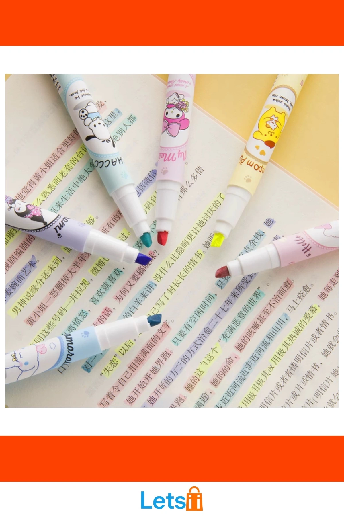 6'lı fosforlu kalem setimiz, Sanrio karakterleriyle dolu ve çok sevimli!