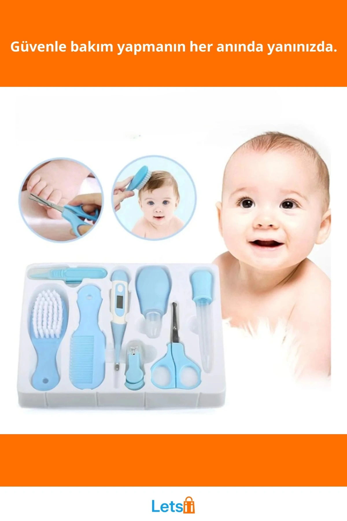 8 Parça Mavi Bebek Bakım Seti Güvenli ve Pratik