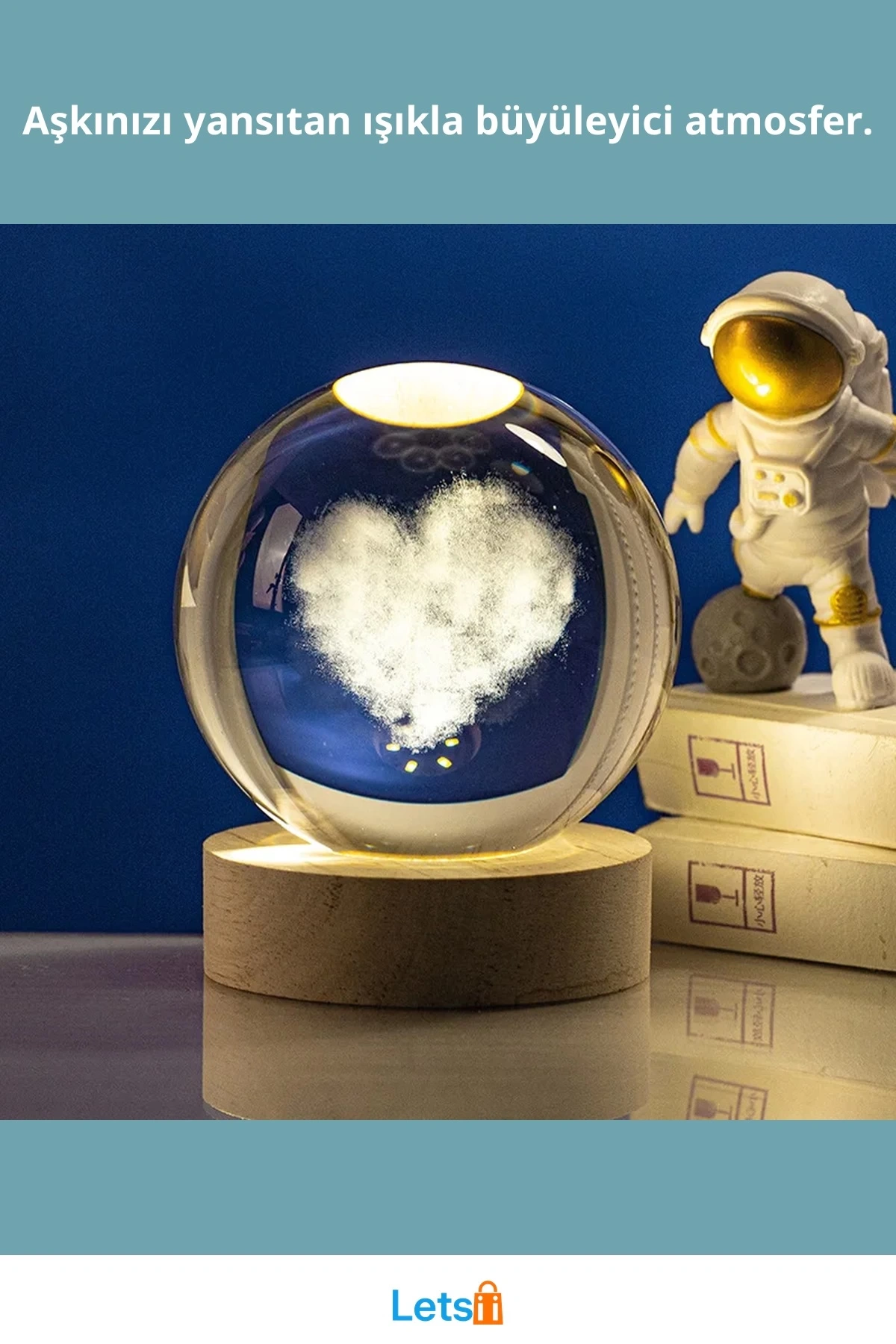 Aşk temalı kalp tasarımı ile romantik bir atmosfer yaratır.