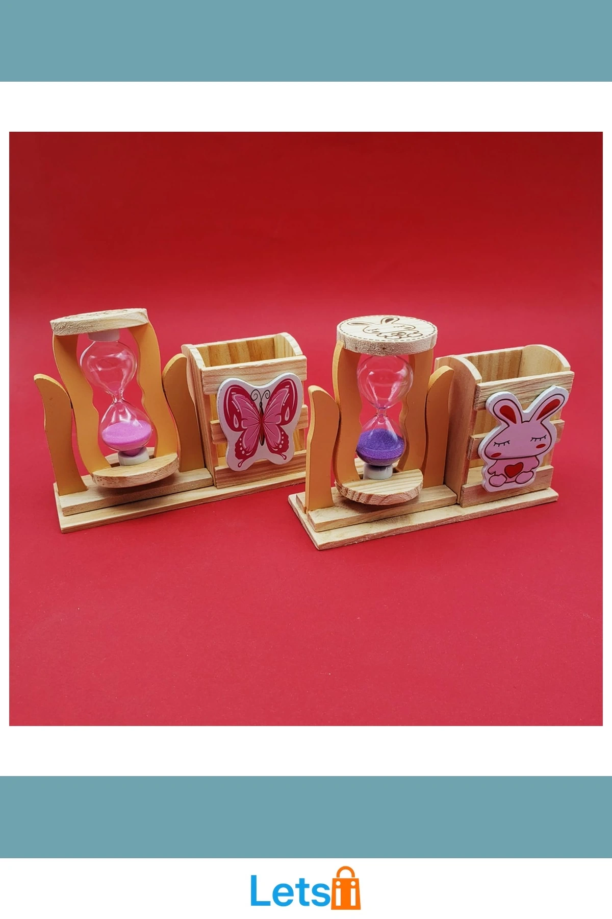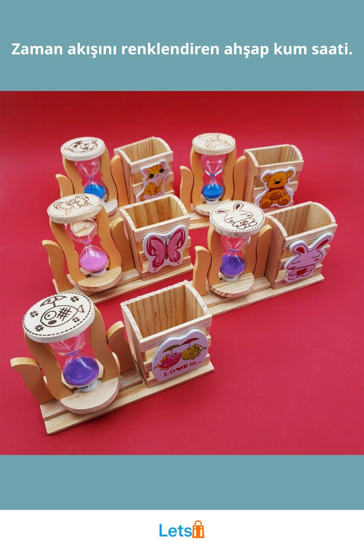 Ahşap Kum Saati Kalemlik Kutulu 3 Renkli Kum