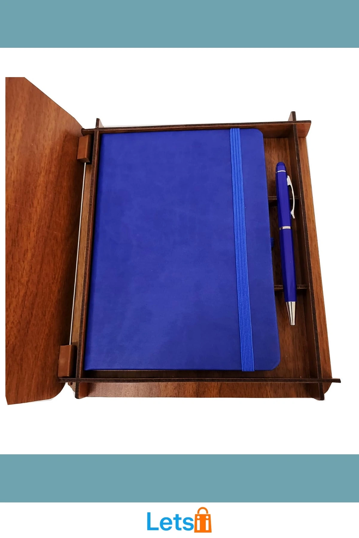 Ahşap Kutulu Termo Deri Defter ve Metal Kalem Seti