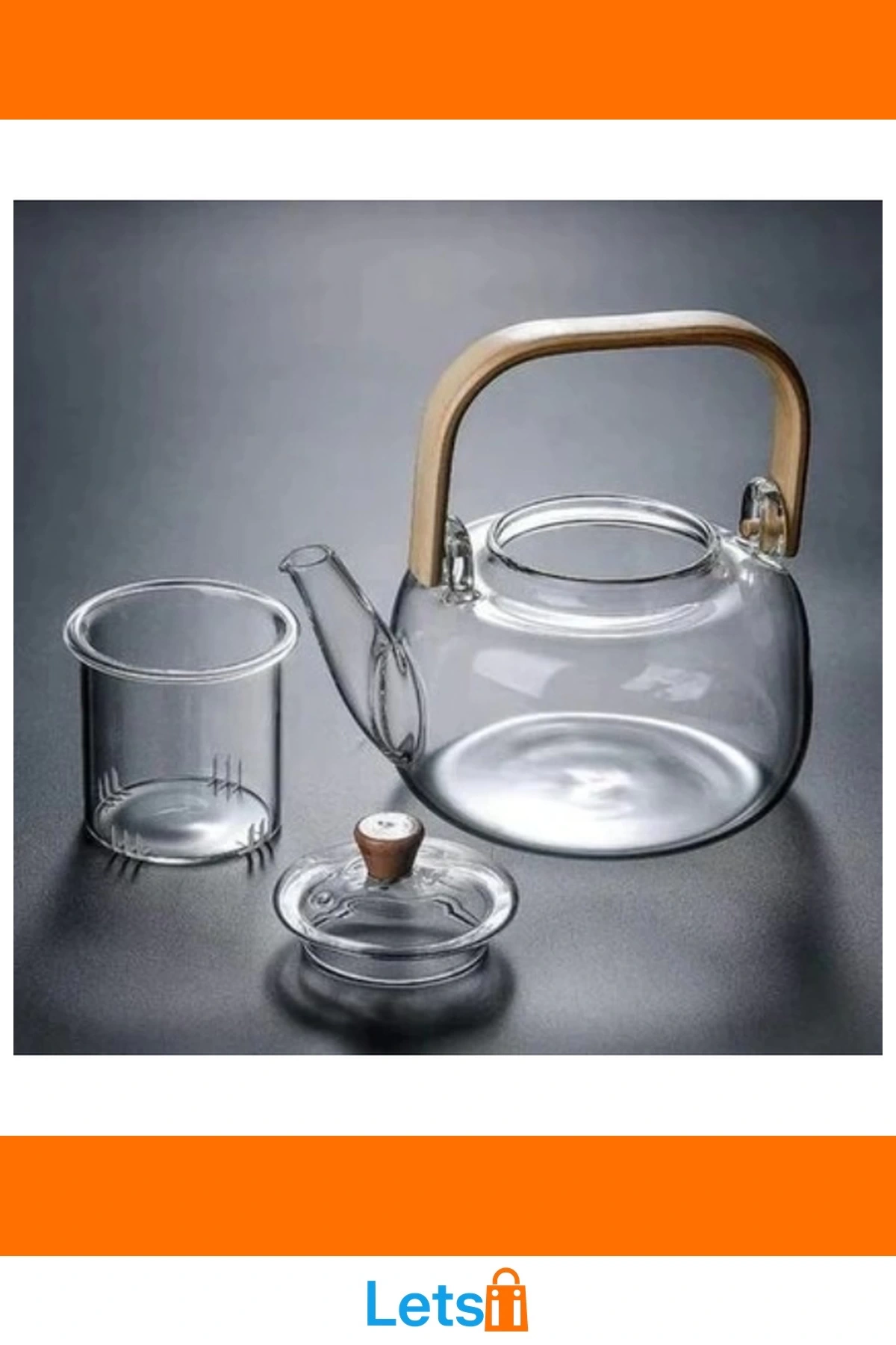 Ahşap Saplı Isıya Dayanıklı Borosilikat Cam Filtreli Demlik