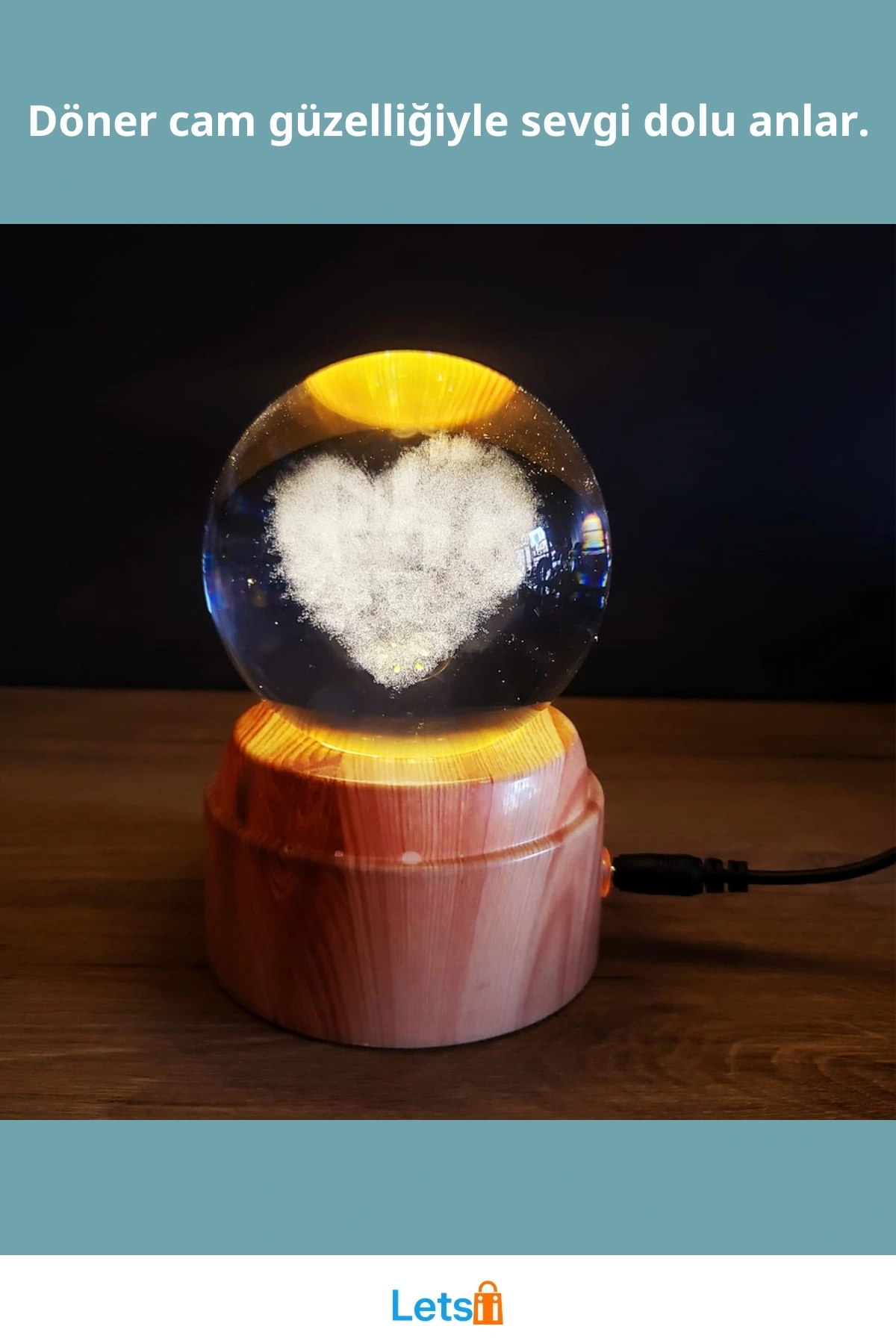 Paket içeriğinde 1 adet kalp tasarımlı dönen cam küre bulunuyor.