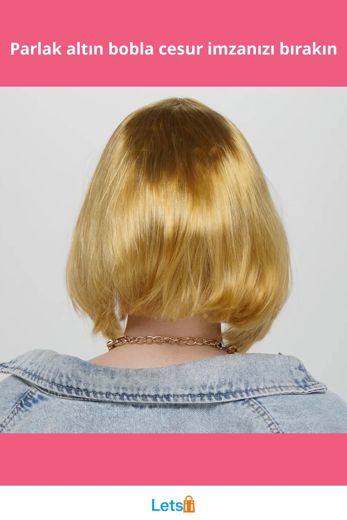 Altın Renk Düz Kesim Küt Parti Peruk Modern ve Şık