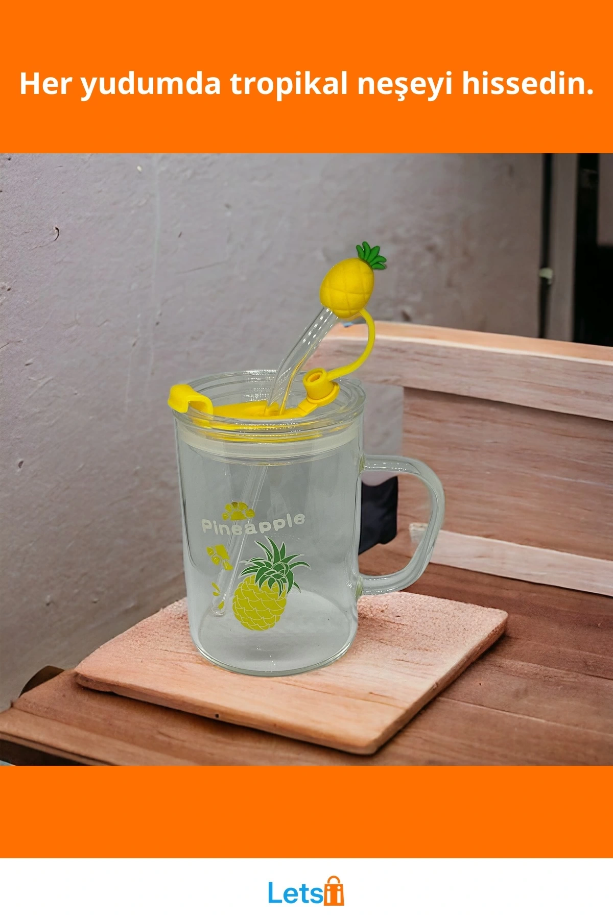 Silikon ananas figürlü pipet kapağı, sıradanlıktan uzak bir stil sunuyor.