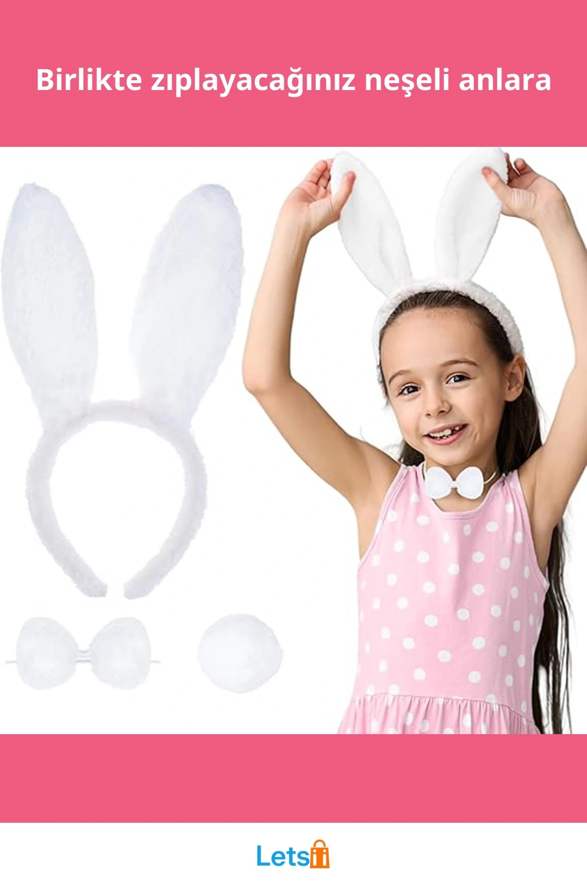 Her bir set, 1 adet tavşan taçı, 1 adet papyon ve 1 adet kuyruk barındırır.