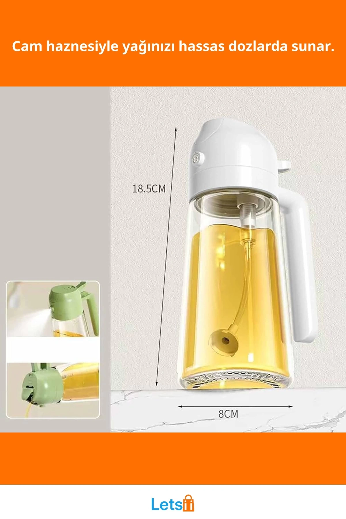 Şeffaf Cam BPA İçermeyen Akıllı Tasarımlı Püskürtücü Yağdanlık