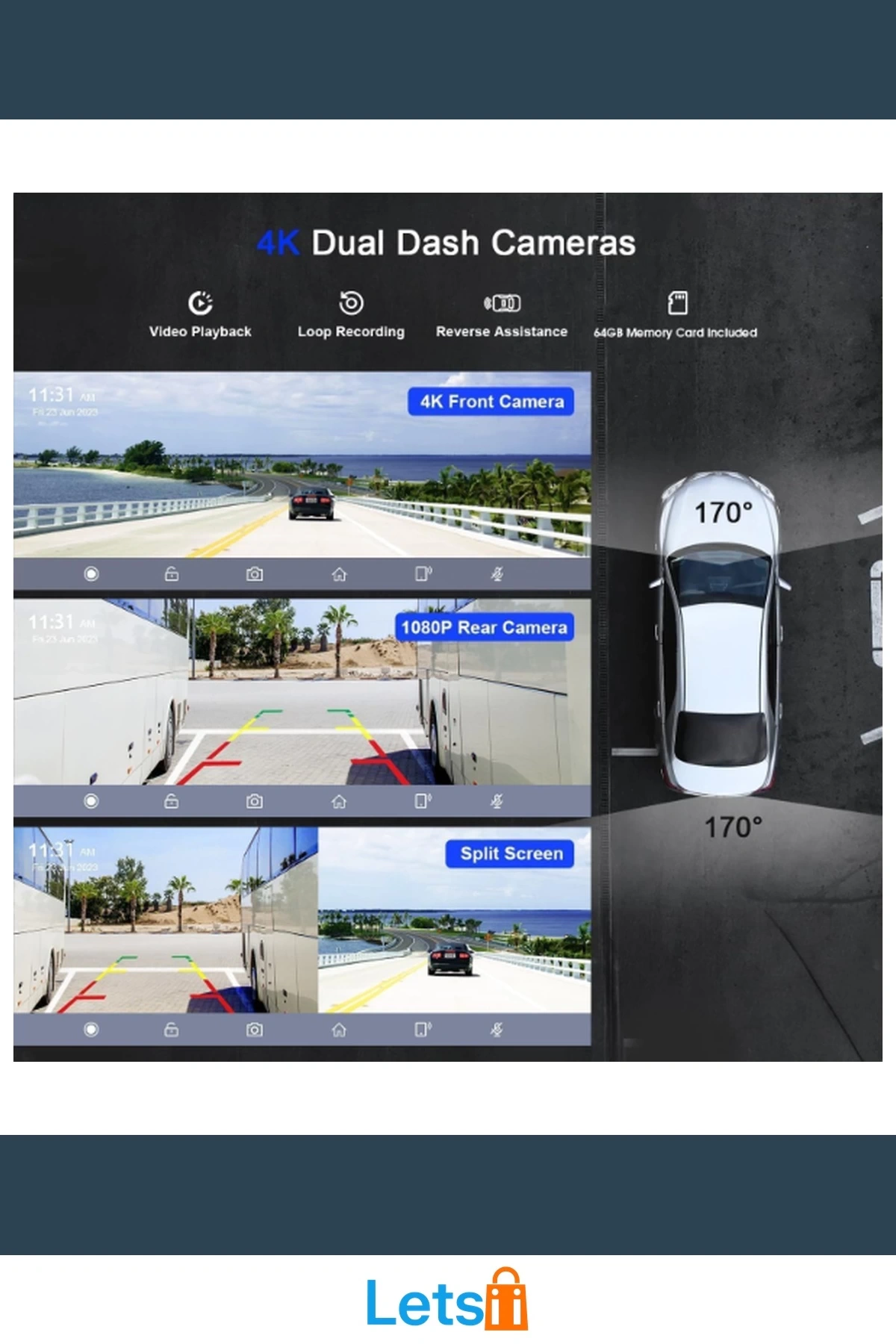 Ön kamera 4K ultra HD kalitesiyle kayıt yaparken, arka kamera AHD 1080P ile güvenliğinizi artırıyor.