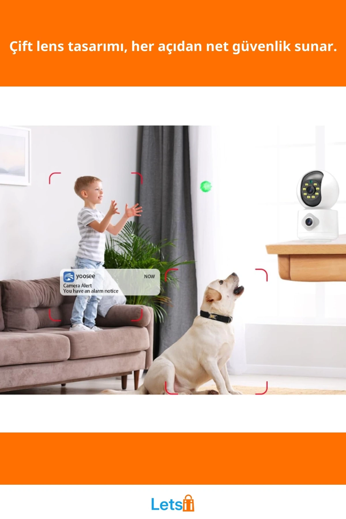 Gelişmiş güvenlik için mükemmel çözüm: Letsii Çift Lensli Wi-Fi İç Mekan Kamerası ile evinizi her açıdan izleyin!