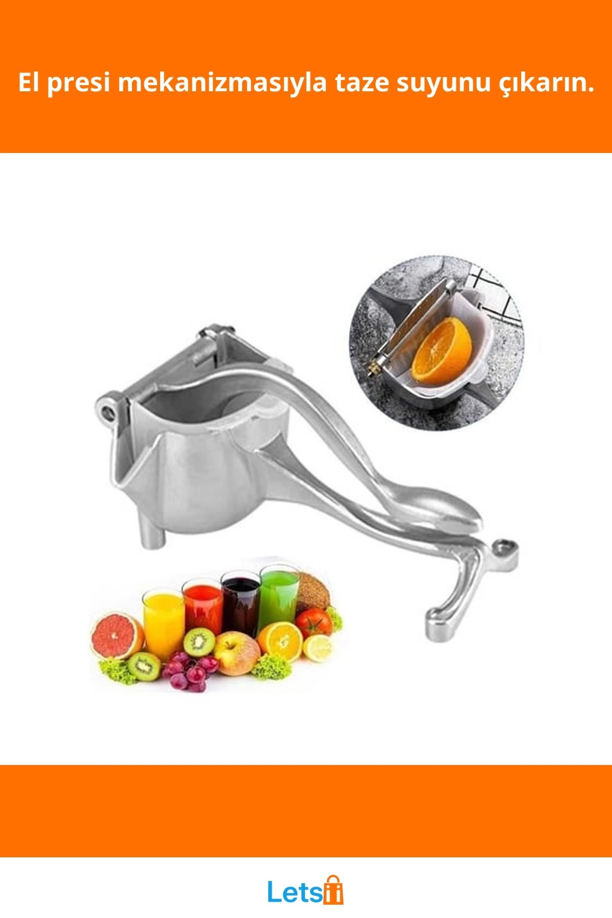 Letsii'nin metal meyve sıkacağı, narenciye meyveleri için mükemmel bir seçenek.