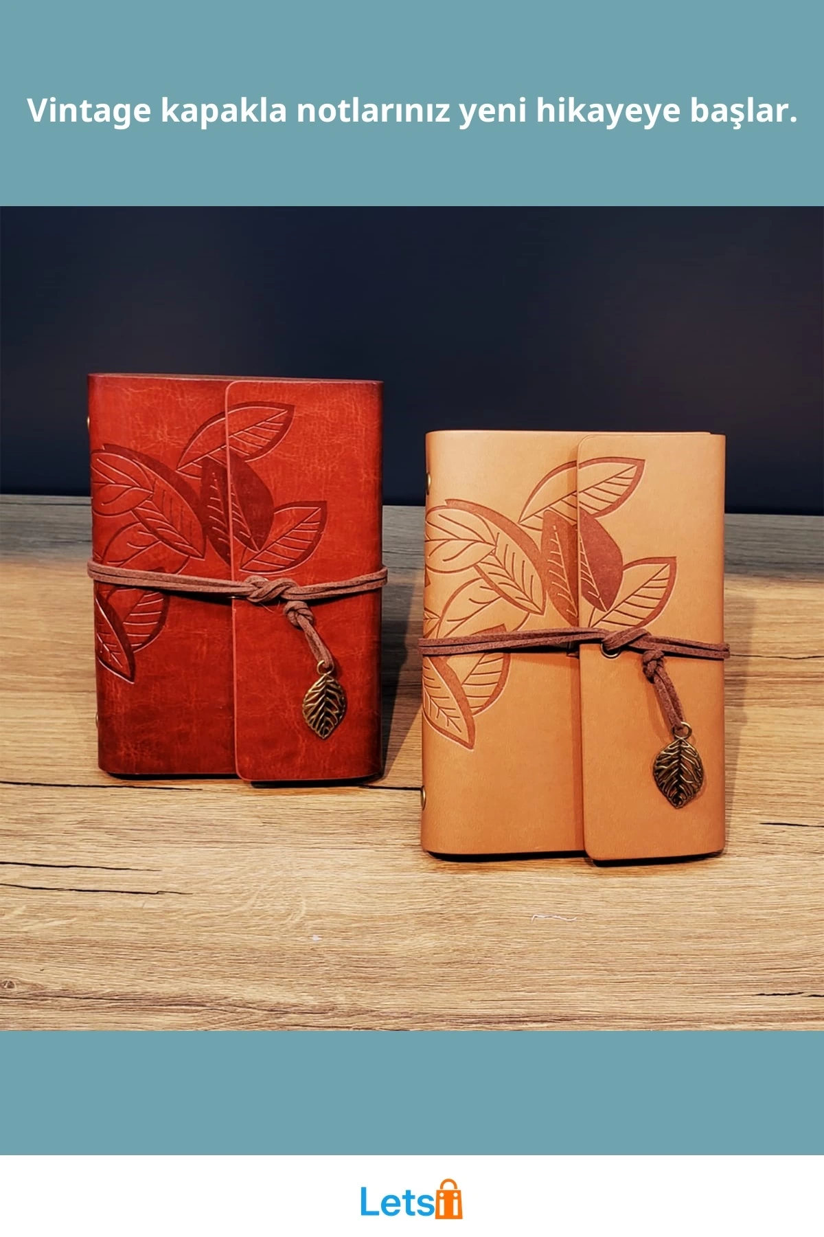 Deri Yaprak Desenli Küçük Boy Defter 88 Yapraklı Şık Not Defteri