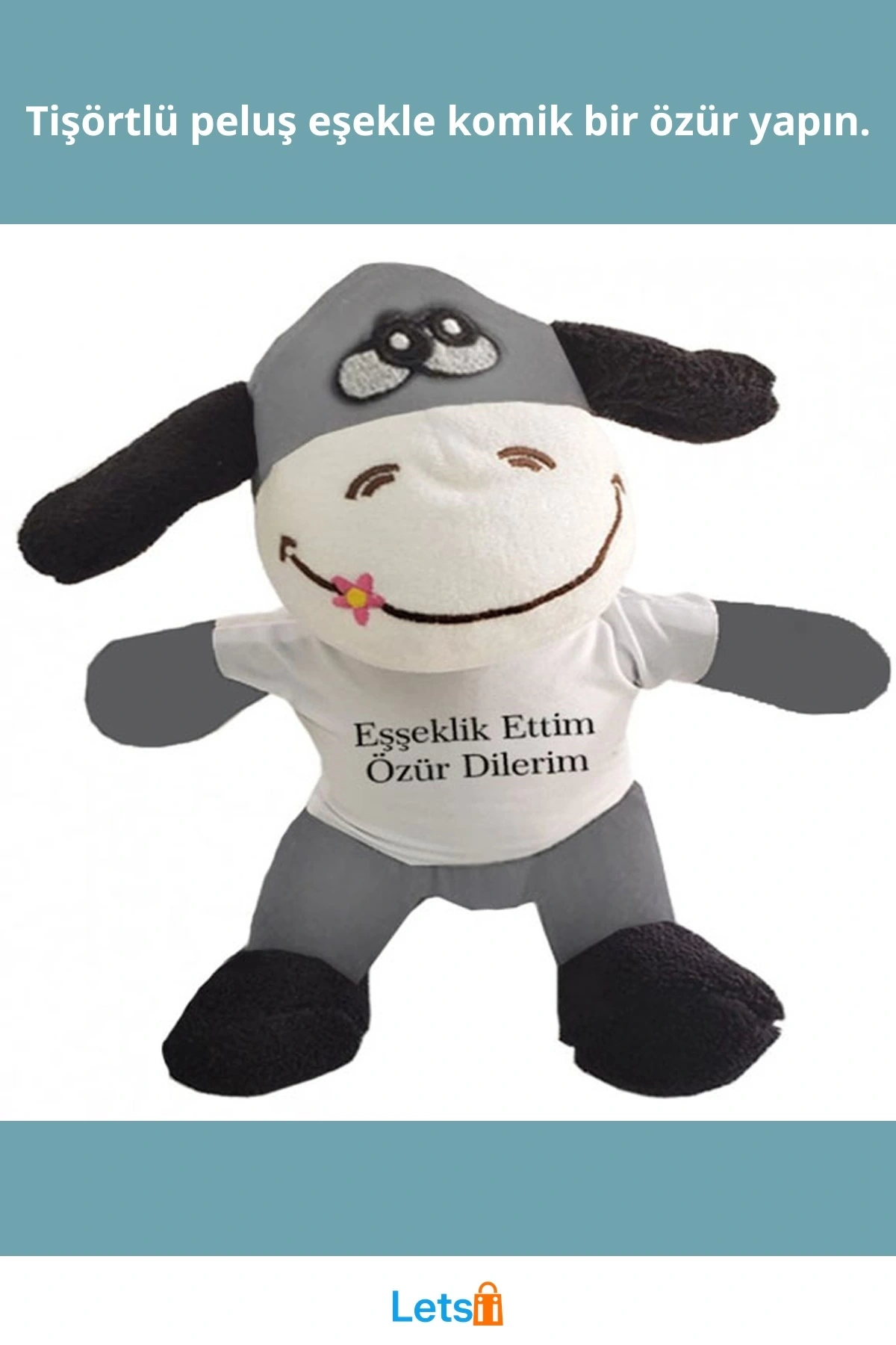 Eğlenceli Peluş Eşek Tişörtlü Özür Dileme Oyuncağı 24cm