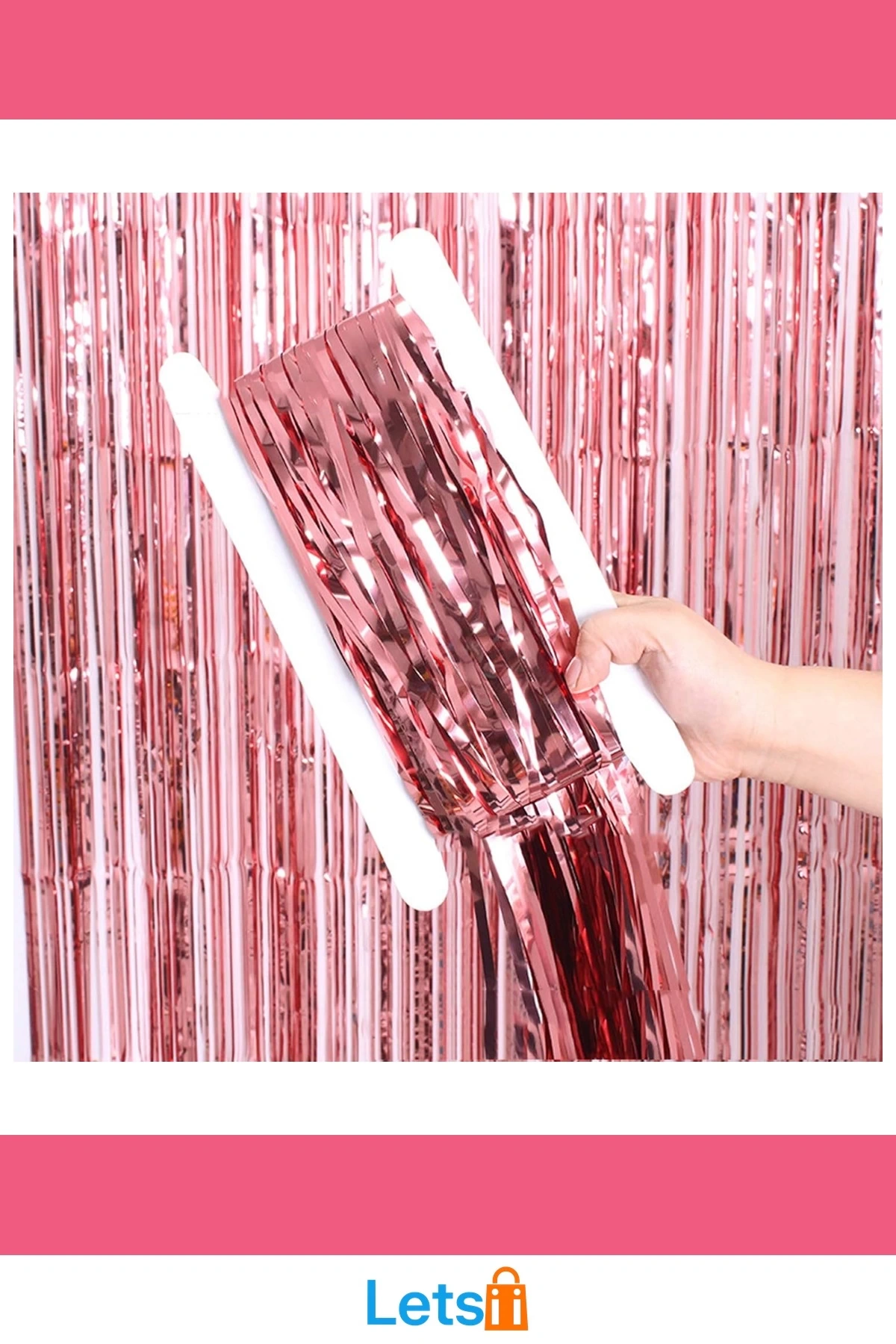 Ekstra Metalize Parlak Saçaklı Arka Fon Perde Rose Gold