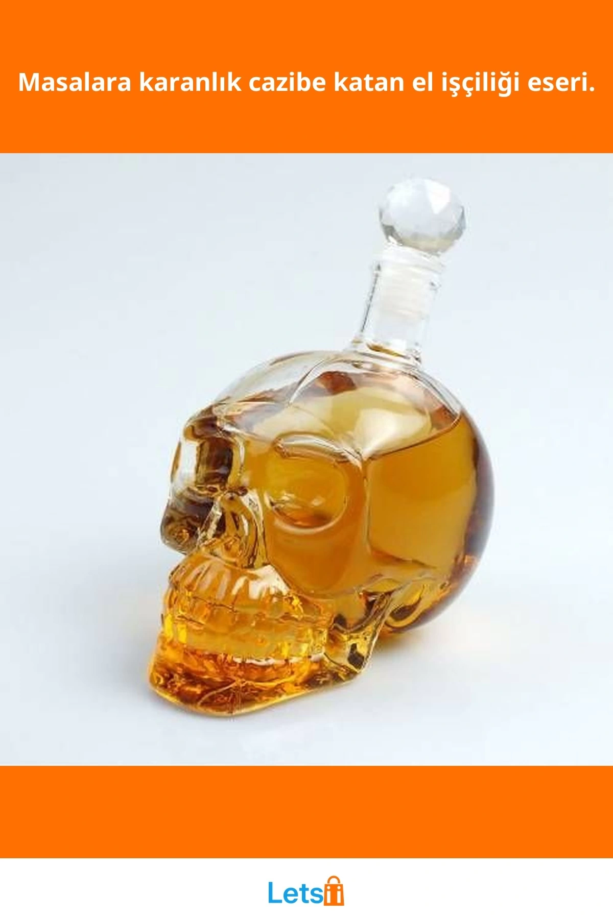 El Yapımı Kuru Kafa Cam Şişe 350 Ml Estetik Tasarım