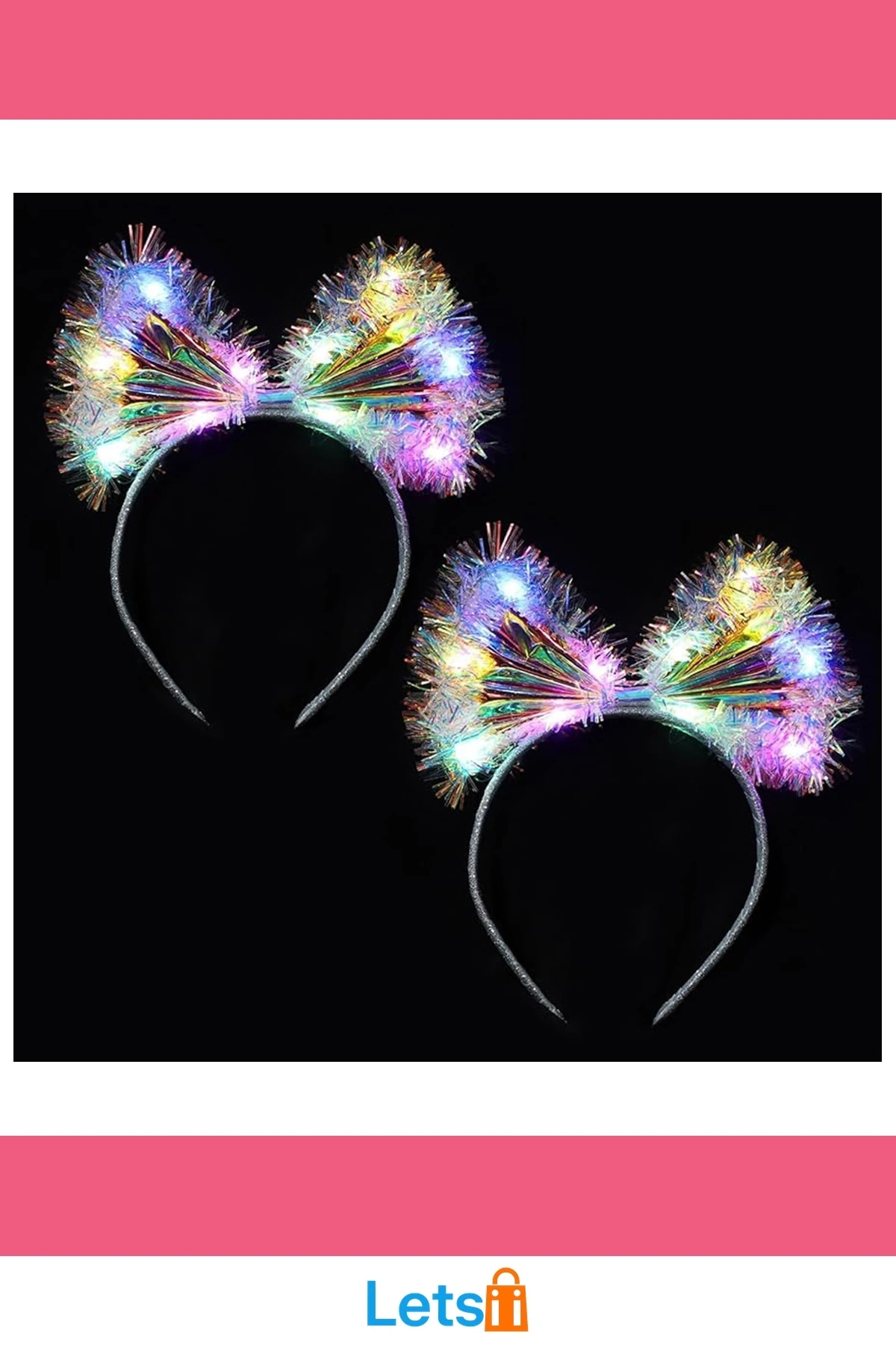 Rengarenk LED Işıklı Fiyonk Tül Parti Tacı Pembe 25x25 cm