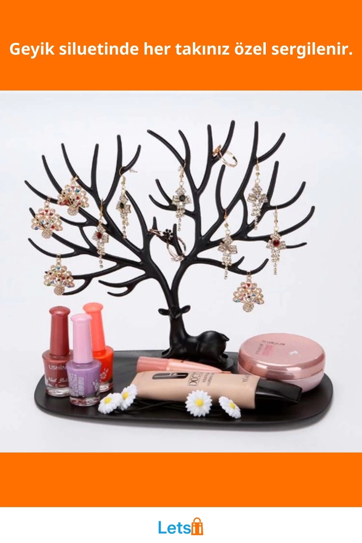 Kolye, yüzük, küpe gibi küçük takılarınızı sergilemek için idealdir.