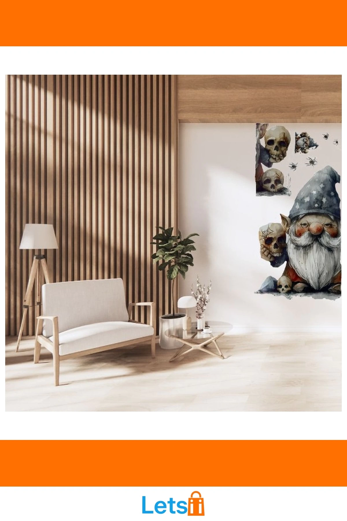 Gotik Cüce ve Kafatası Temalı Duvar Sticker