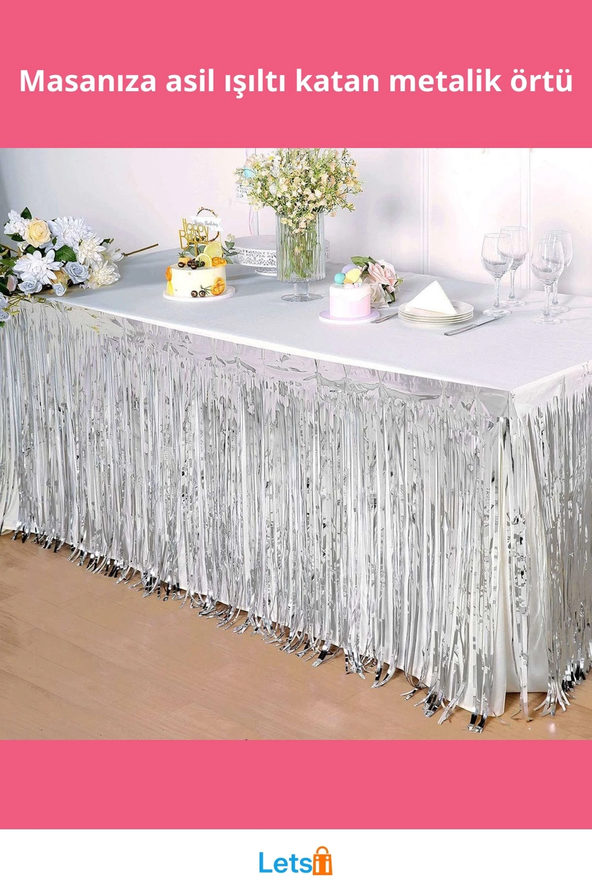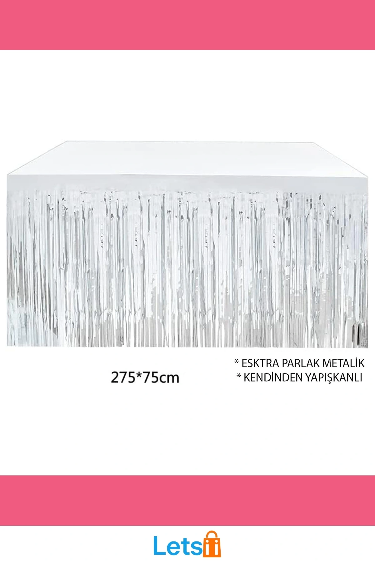 Bu Gümüş Metalize Masa Eteği, partilerinizi şık bir şekilde süslemenin mükemmel yoludur!