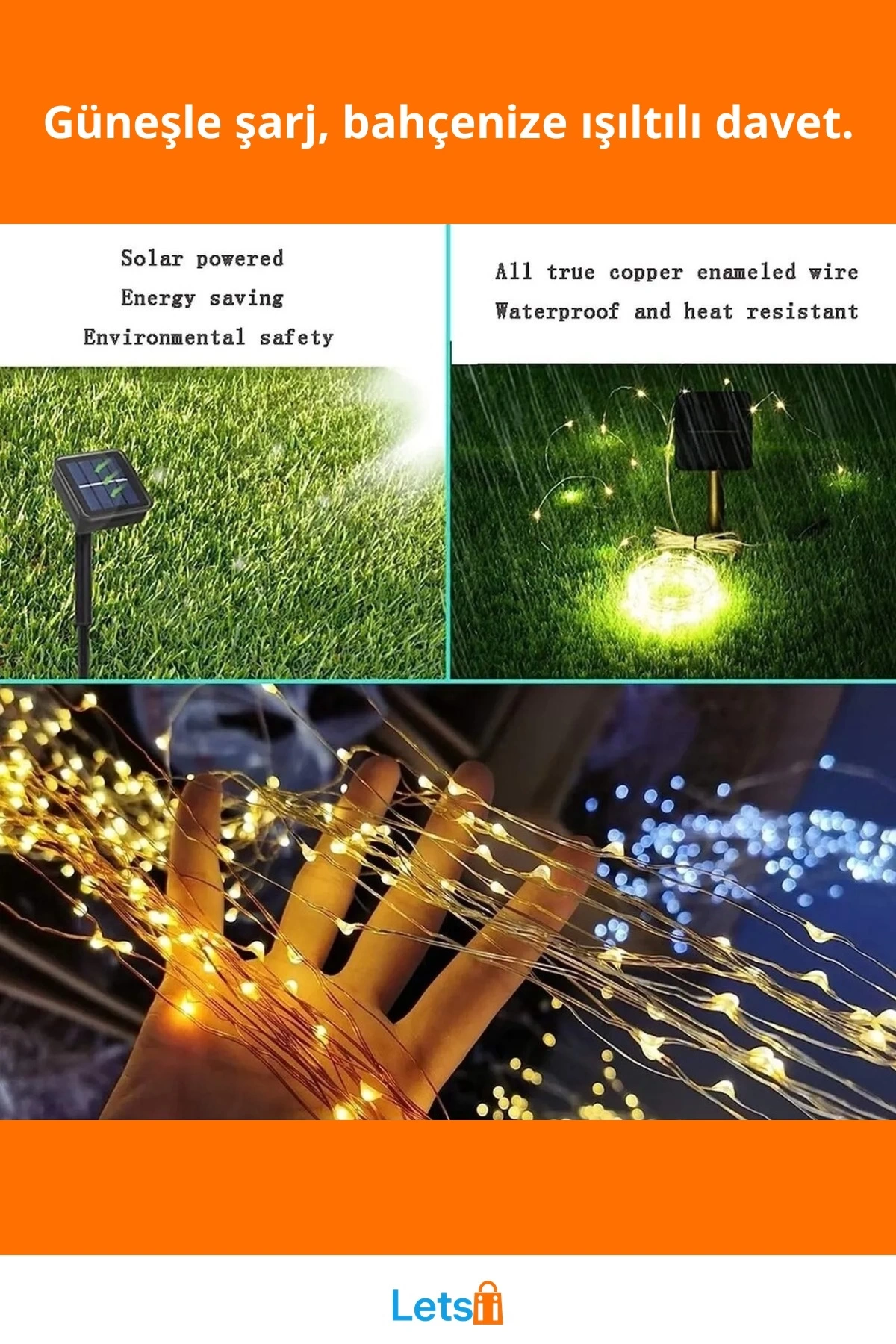Letsii Güneş Enerjili 200 LED 20 Metre Işık Şeridi, açık alanlarınızda harika bir atmosfer yaratır.