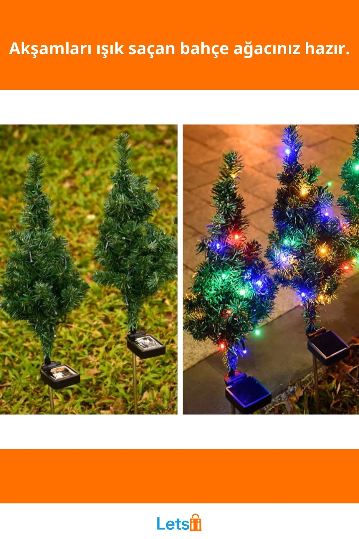 Güneş Enerjili Dekoratif Çam Ağacı LED Aydınlatma Dış Mekan