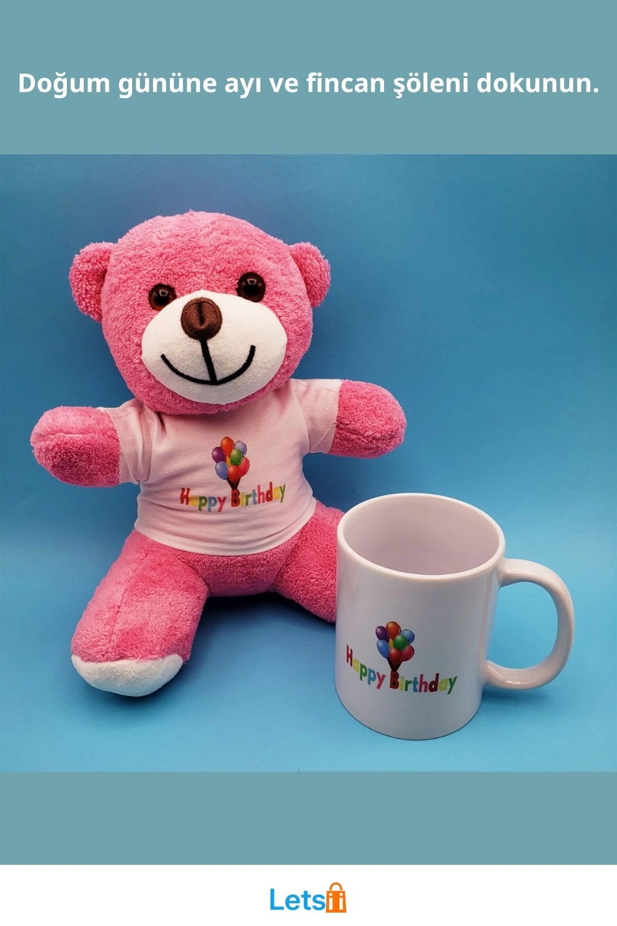 Set içerisinde 1 adet Happy Birthday tasarım pembe ayı ve kupa bardak bulunmaktadır.