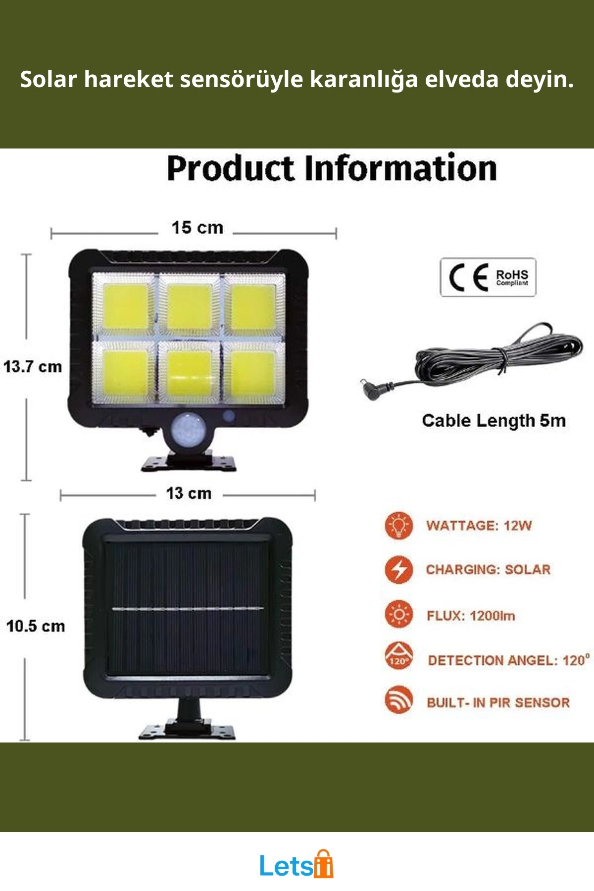 Fonksiyonel Sensörlü 102 Ledli Güneş Enerjili Bahçe Lambası