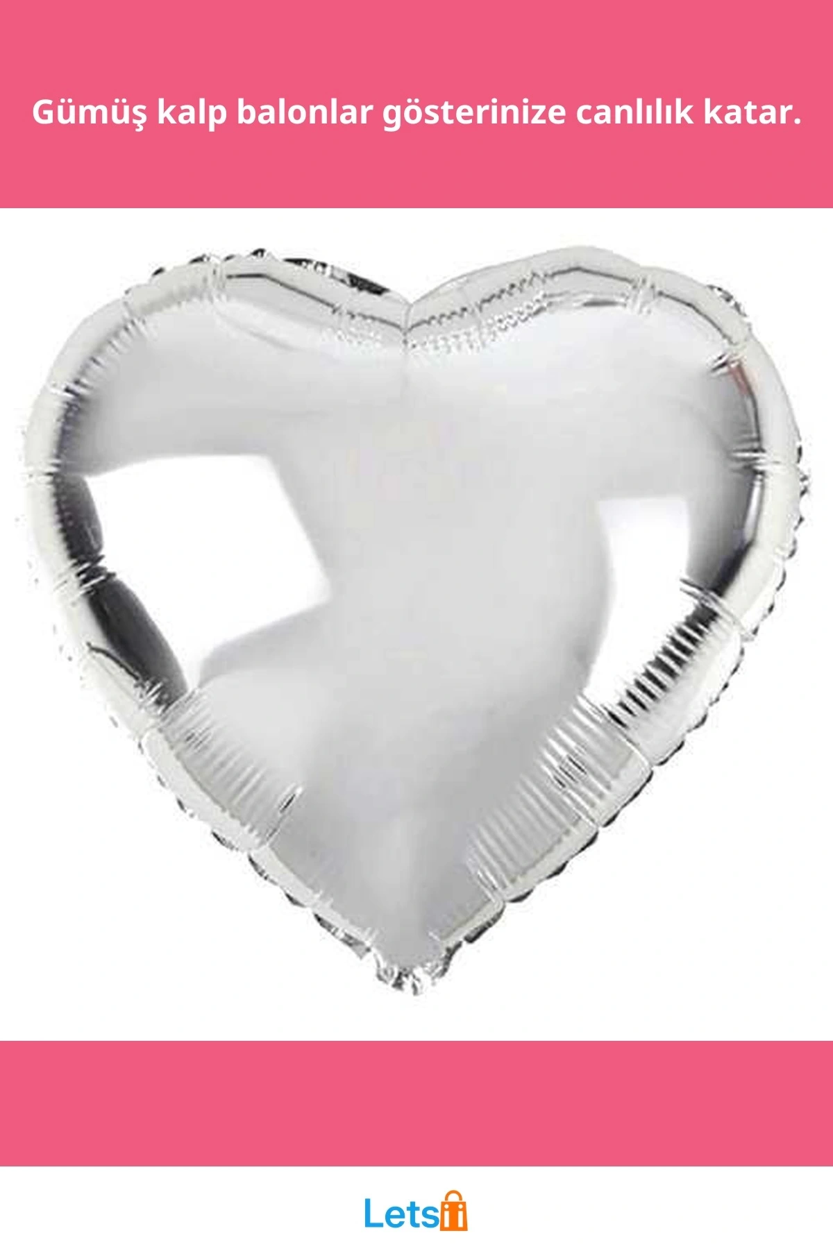 Metalize Parlak Gümüş Kalp Şekilli Uçan Balon 18 İnç 10 Adet