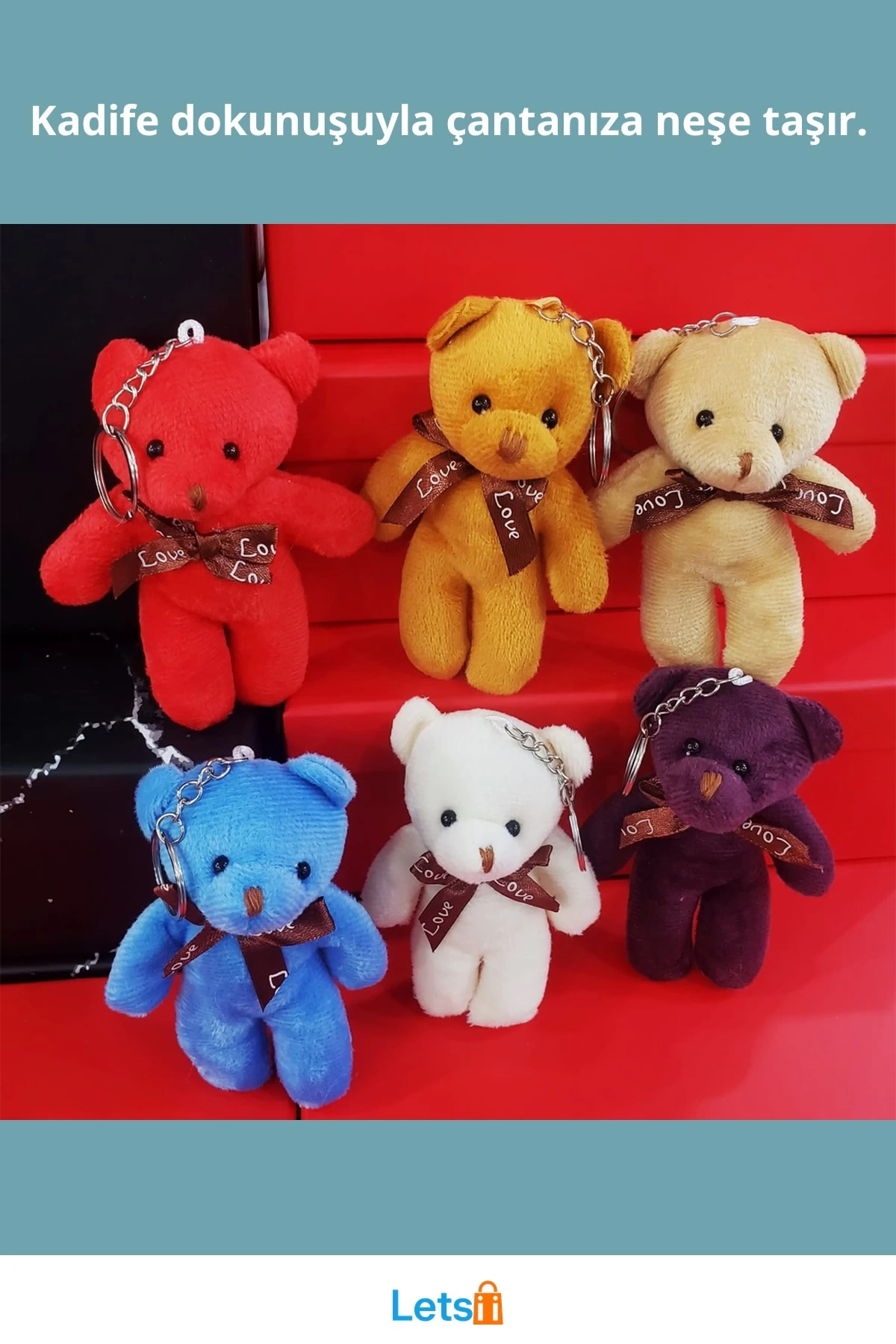 Karışık Renk Sevimli Kadife Ayıcık Anahtarlık 12x6 cm