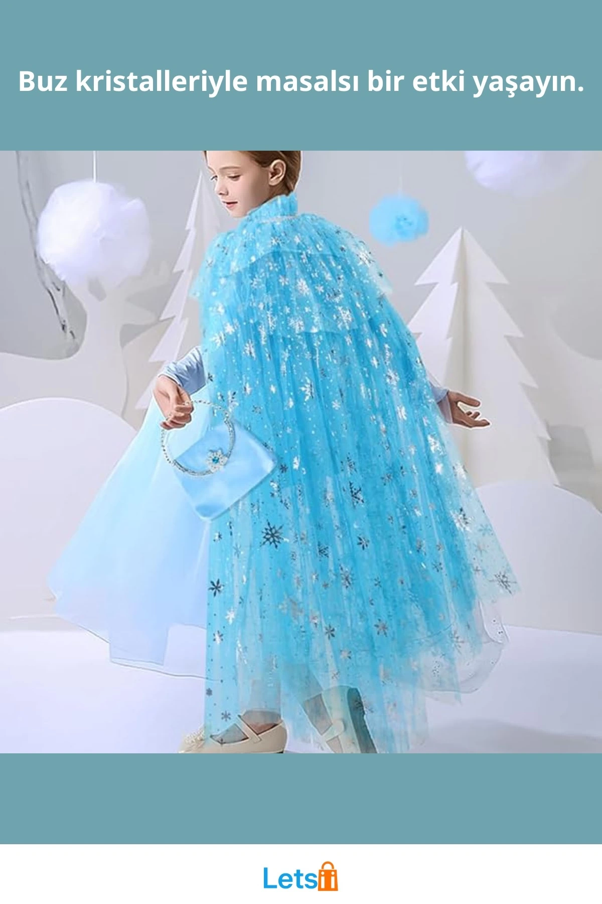 Elsa temalı bu mavi pelerin, hayal gücünü destekler.