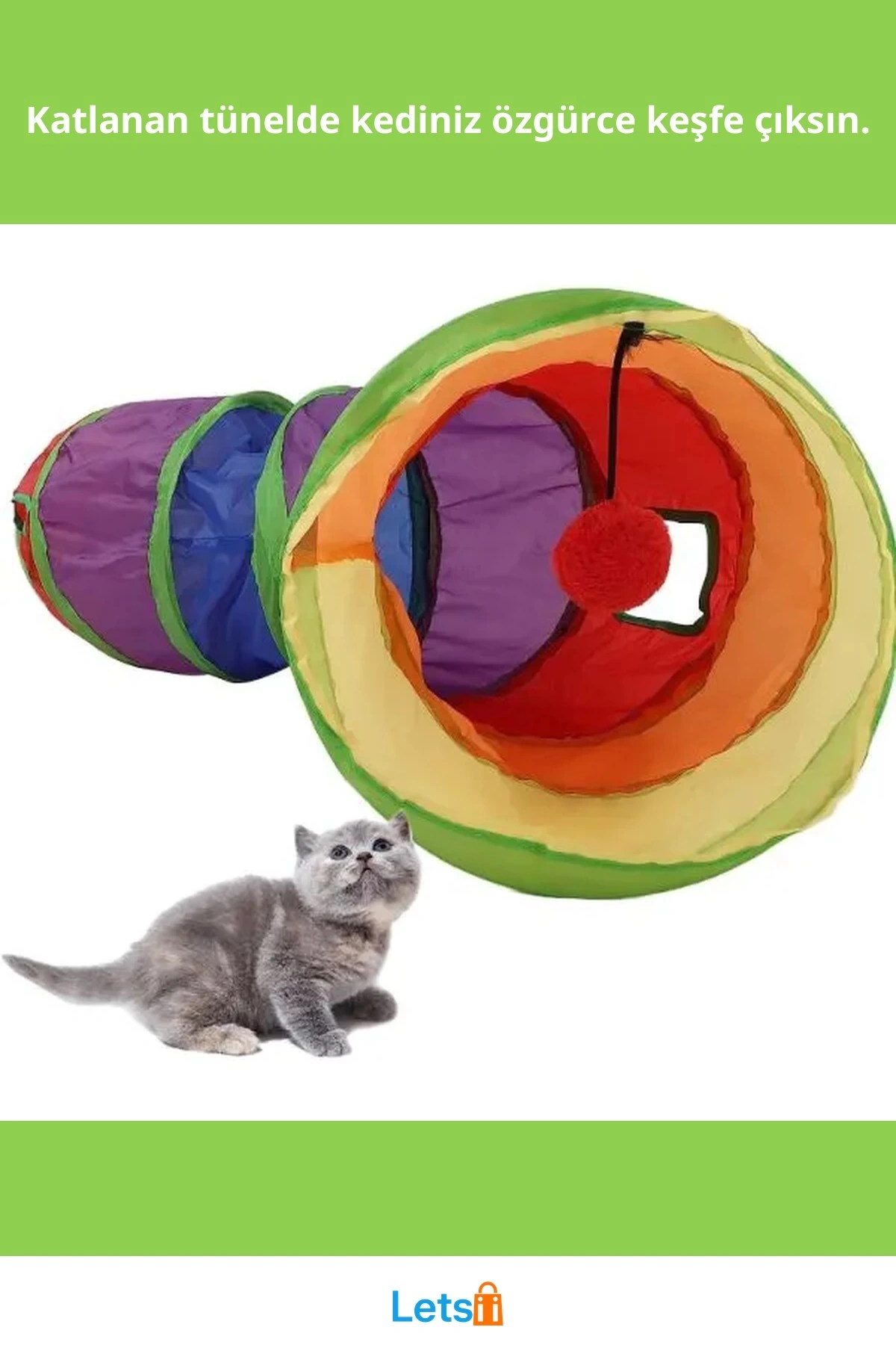 Renkli Dayanıklı Kedi Oyun Tüneli Asılı Oyuncak Top ile Eğlenceli Saklanma Alanı