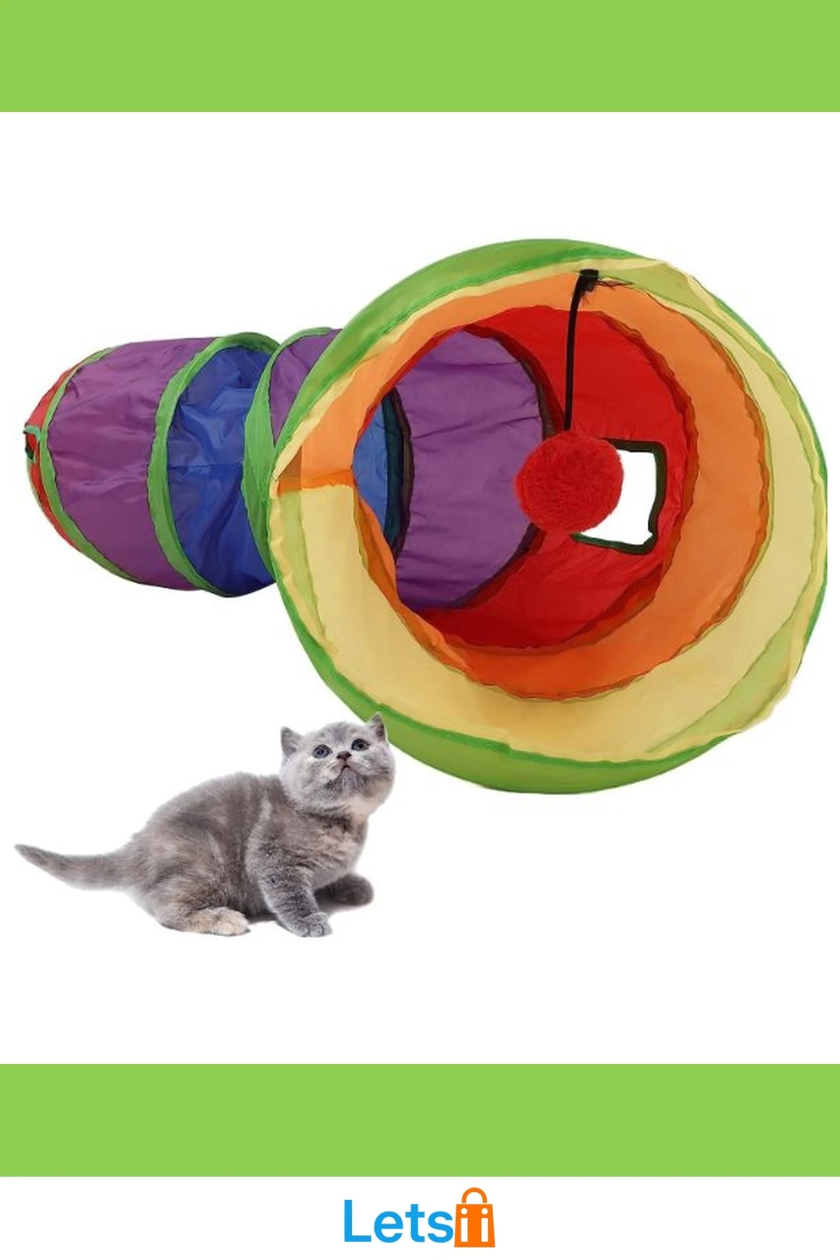 Renkli Dayanıklı Kedi Oyun Tüneli Asılı Oyuncak Top ile Eğlenceli Saklanma Alanı