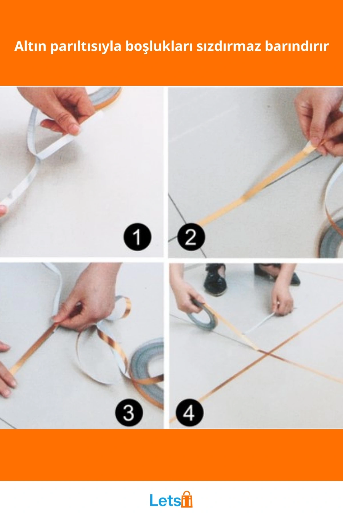 Kendinden Yapışkanlı Çok Amaçlı Altın Fayans Arası Şerit Bant 0.5 cm 50 Metre