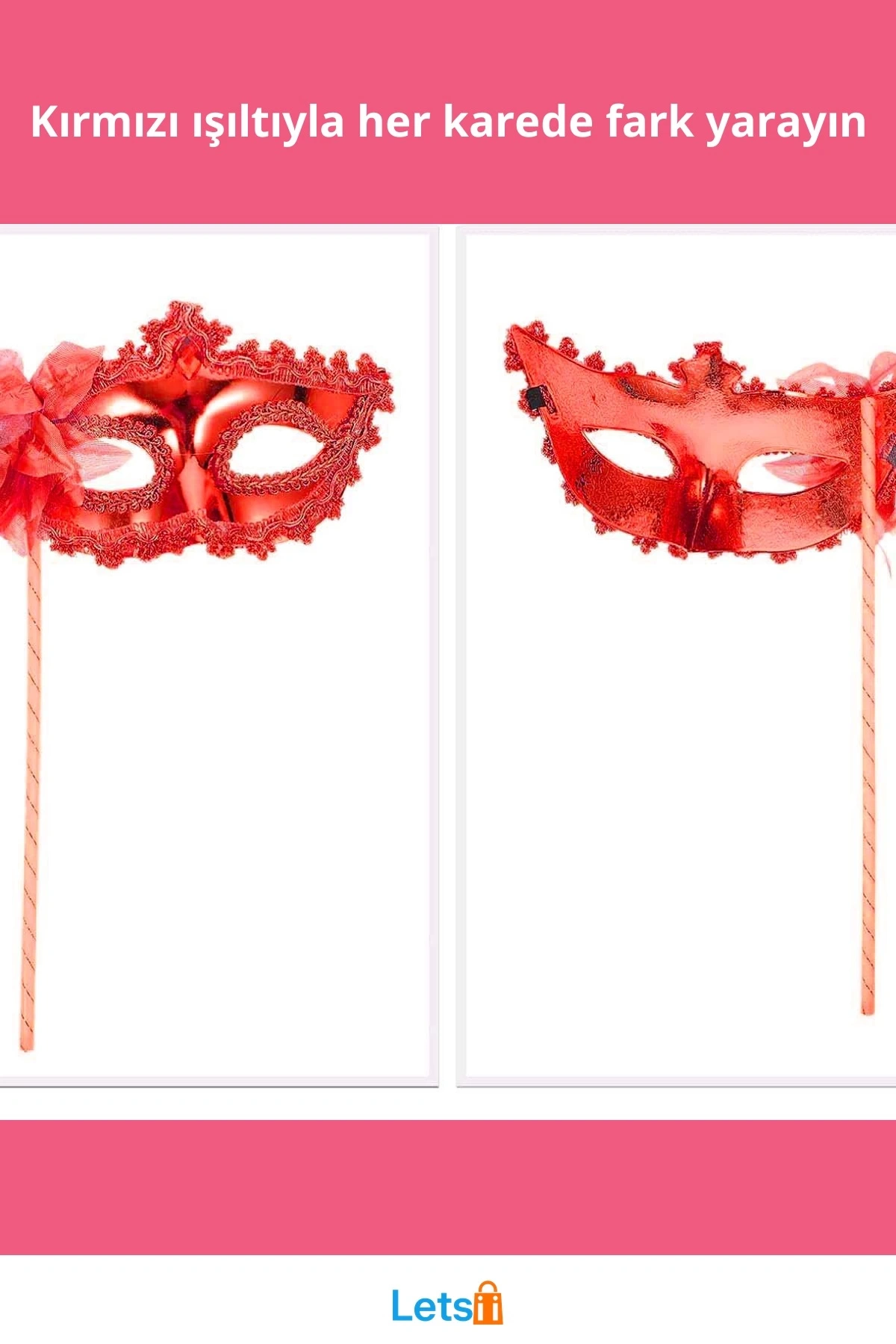 Kırmızı Işıltılı Tutmalı Fotoğraf Çekimi Maskesi