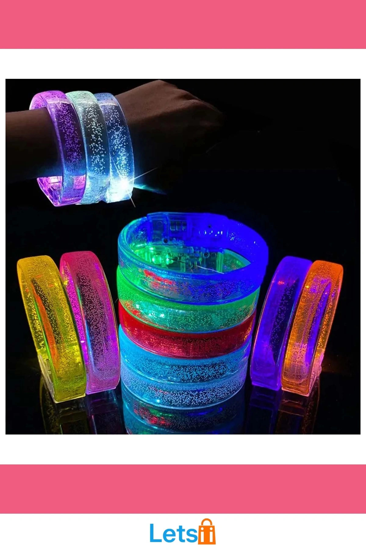Pembe LED Işıklı Baskı Yapılabilen Pilli Bileklik Bilezik 1,5 cm