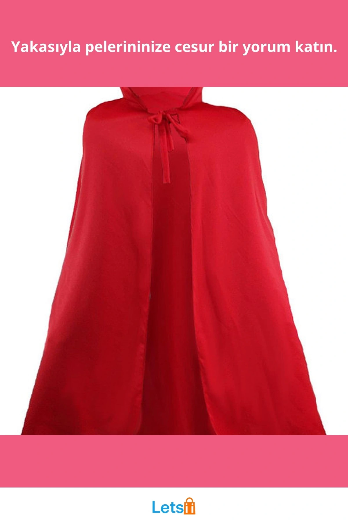Kırmızı Renk Yakalı Pelerin 120 cm Şıklığında