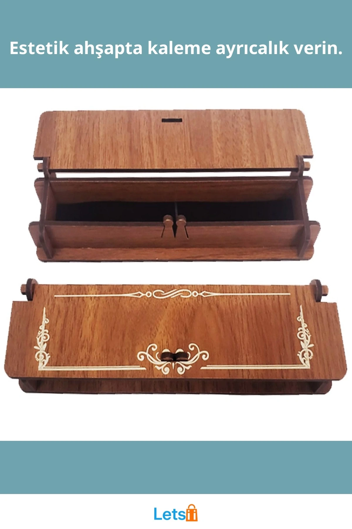 Ahşap kalem kutusu, şıklığı ve zarif tasarımıyla göz dolduruyor.
