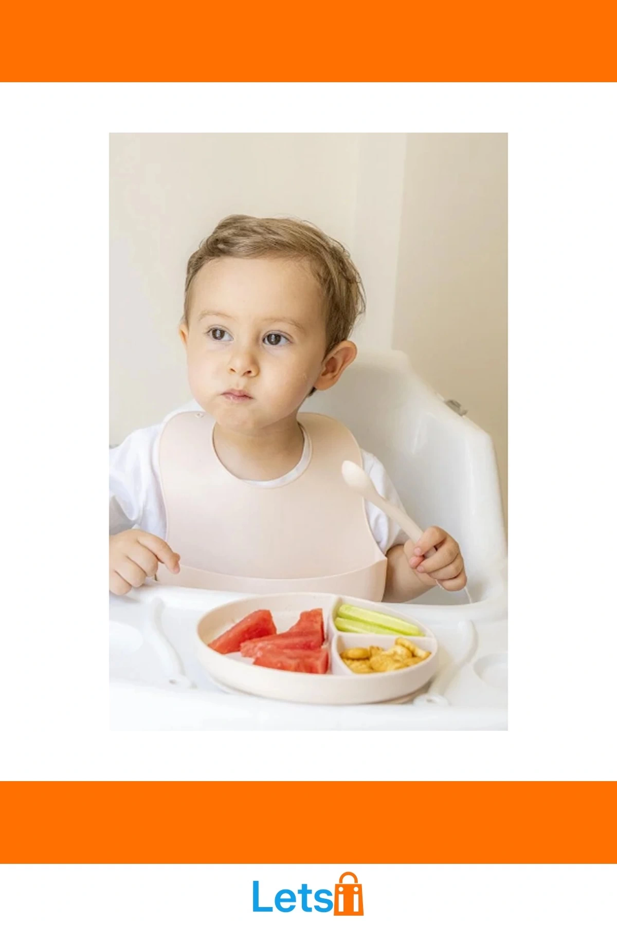 Krem Rengi 3'lü Silikon Bebek Yemek Seti Vakumlu Tabak, Diş Kaşıyıcılı Kaşık, Ayarlanabilir Mama Önlüğü