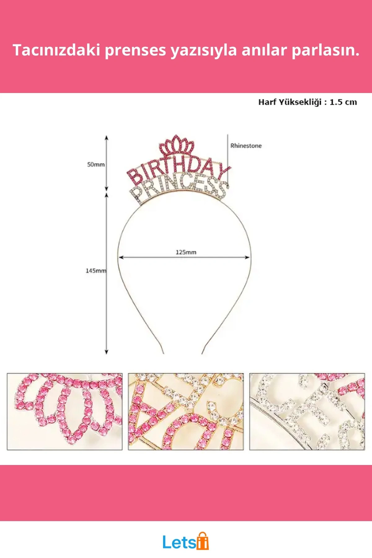 "Birthday Princess" yazısı ile kutlamalarınıza özel bir anlam katar.