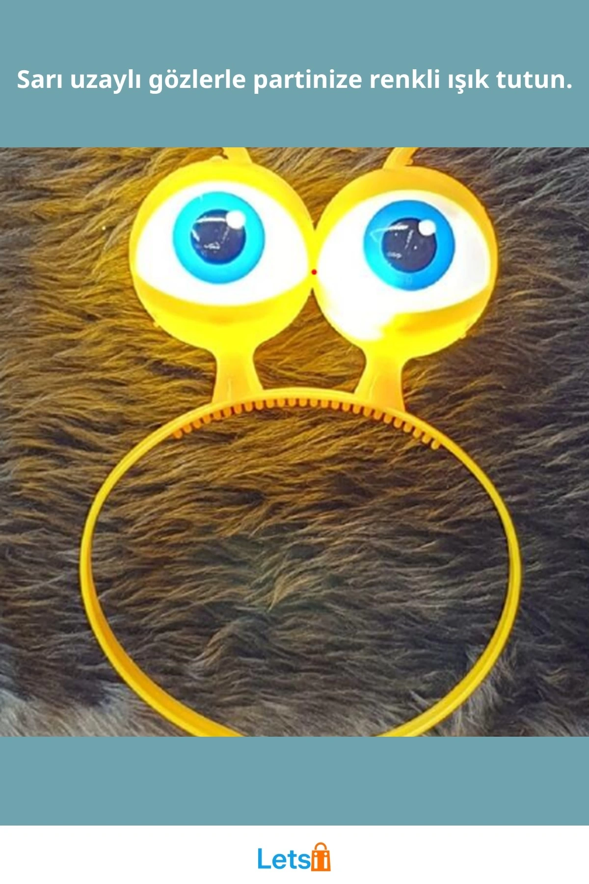 LED Işıklı Pilli Uzaylı Göz Parti Tacı Sarı Renk