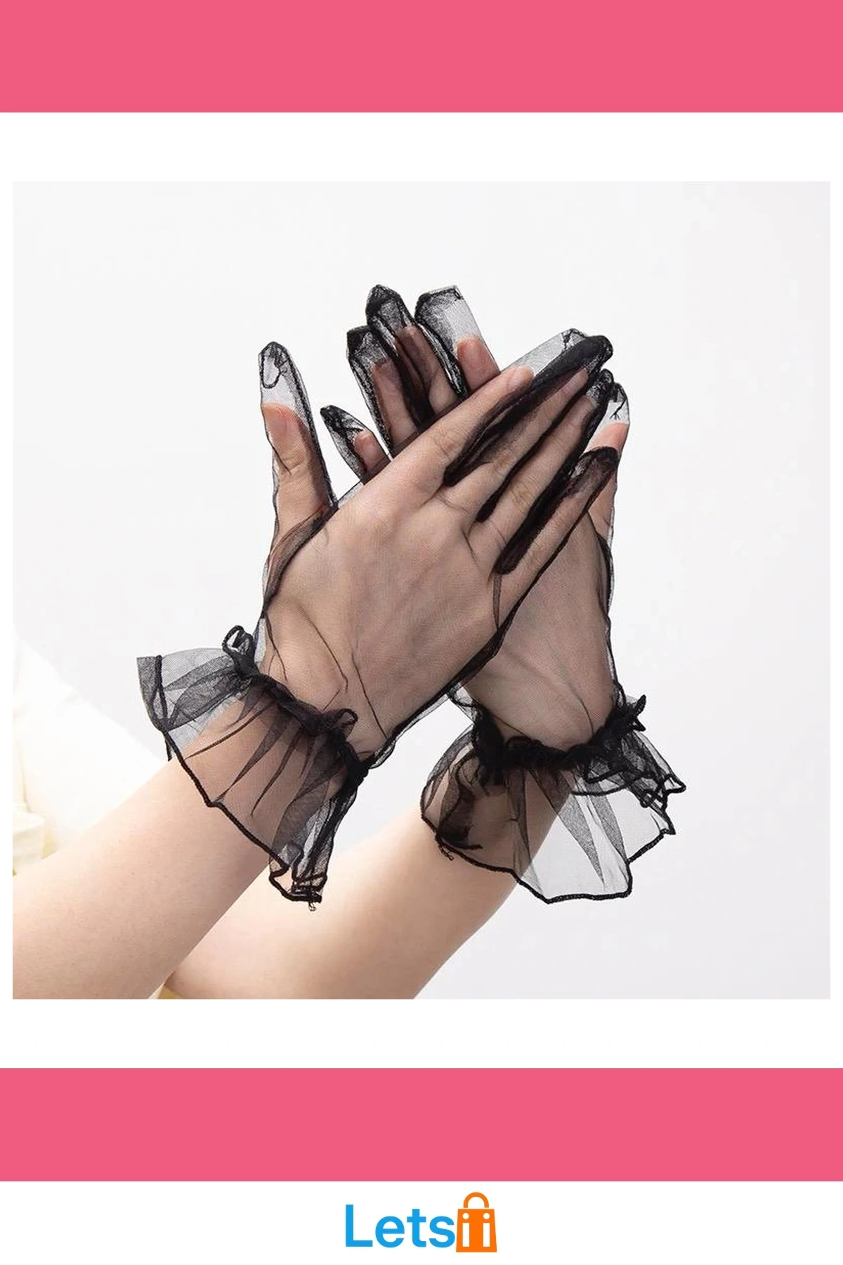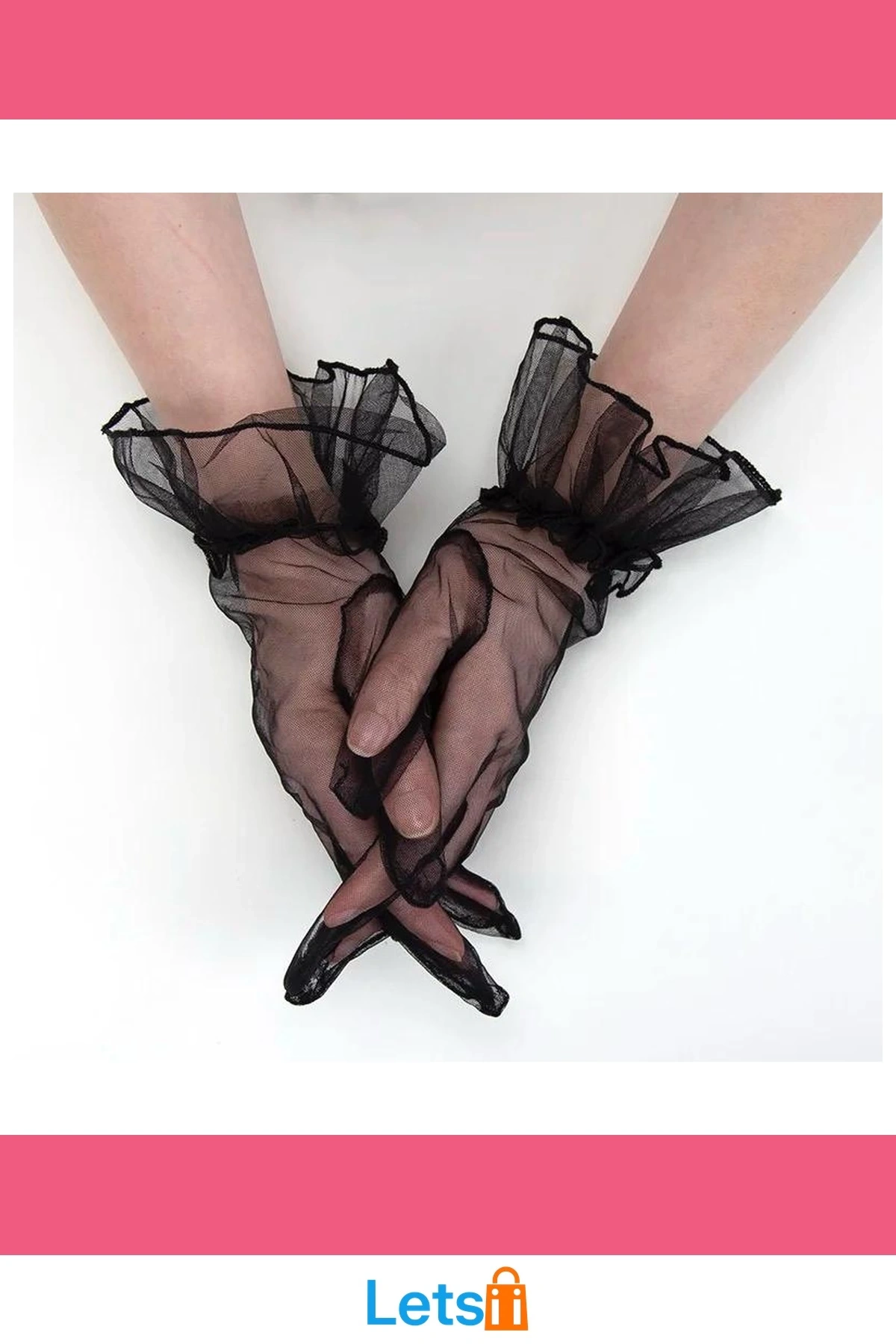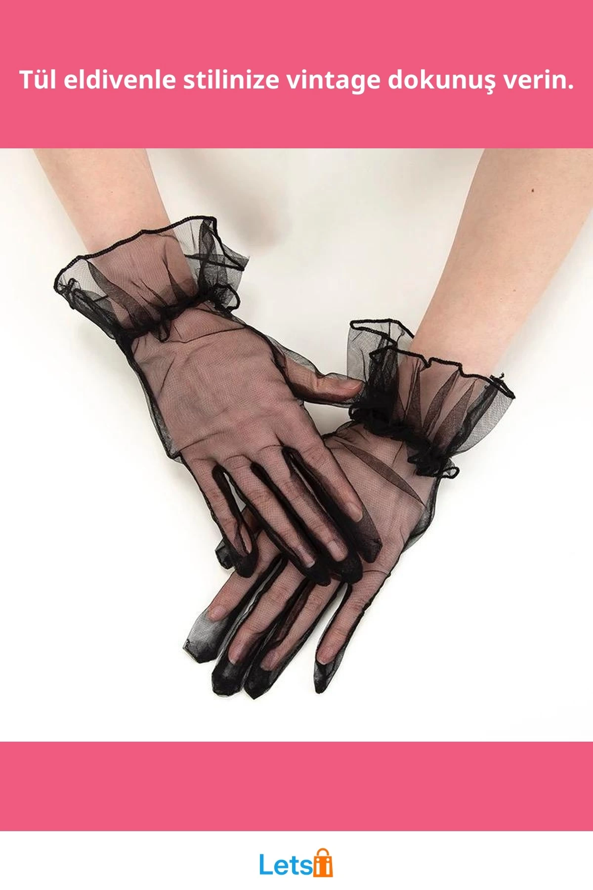 Kısa Boy Likralı Güpürlü Yetişkin Tül Eldiven