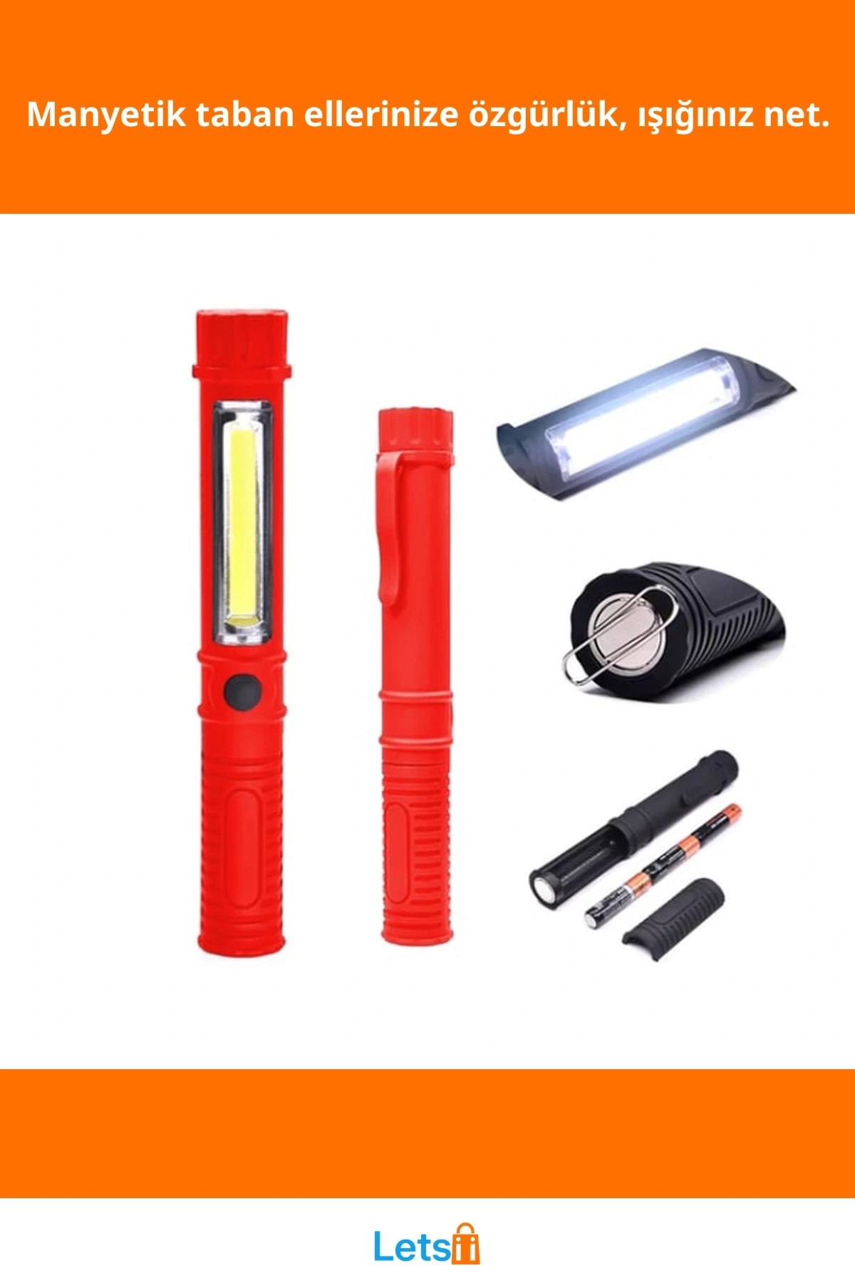 Manyetik Tabanlı Kalem Tipi El Feneri COB LED Aydınlatma