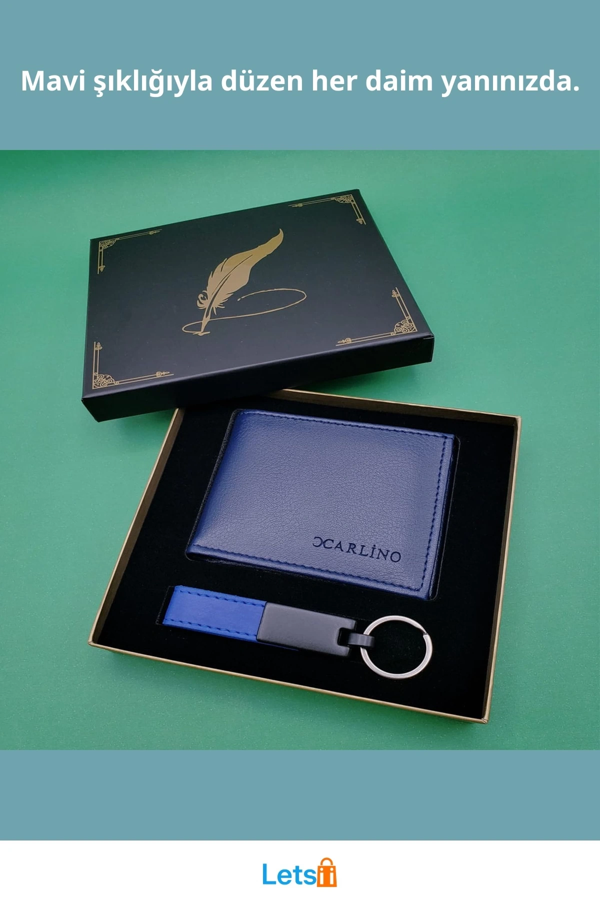 Mavi Deri Cüzdan ve Anahtarlık Seti Şık Tasarım ve Yüksek Fonksiyonellik