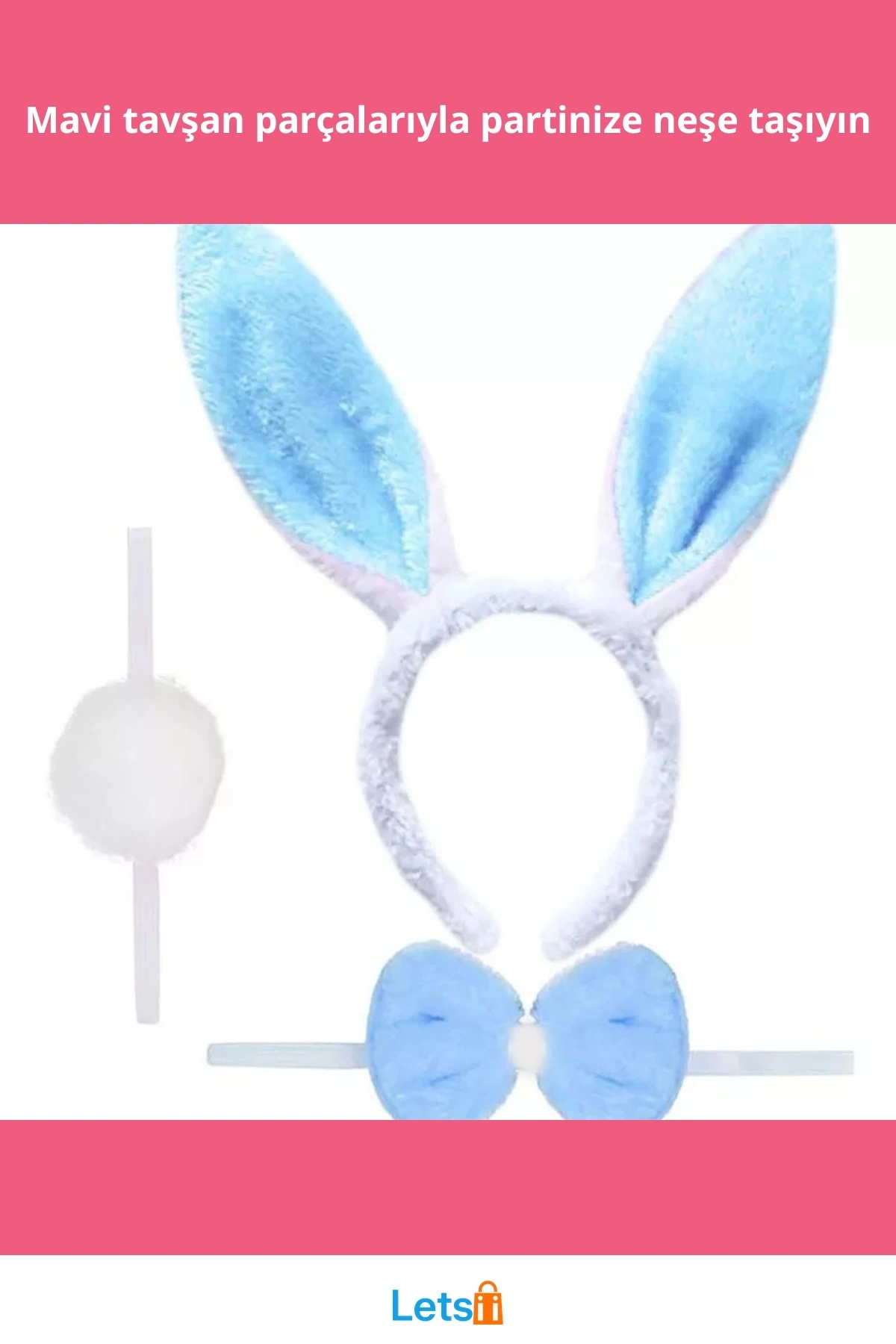 Mavi Tavşan Kostüm Seti Taç, Papyon, Ponpon, Kuyruk