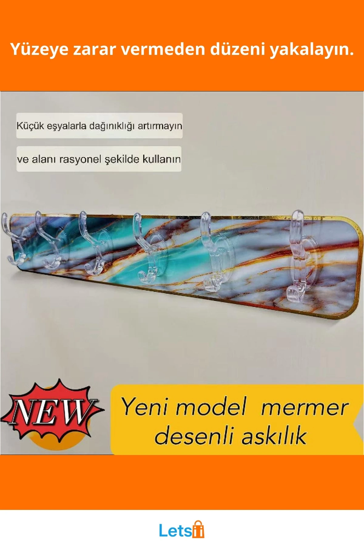 Mermer desenli yapışkanlı askılığımız, evinize şıklık katmak için tasarlandı!