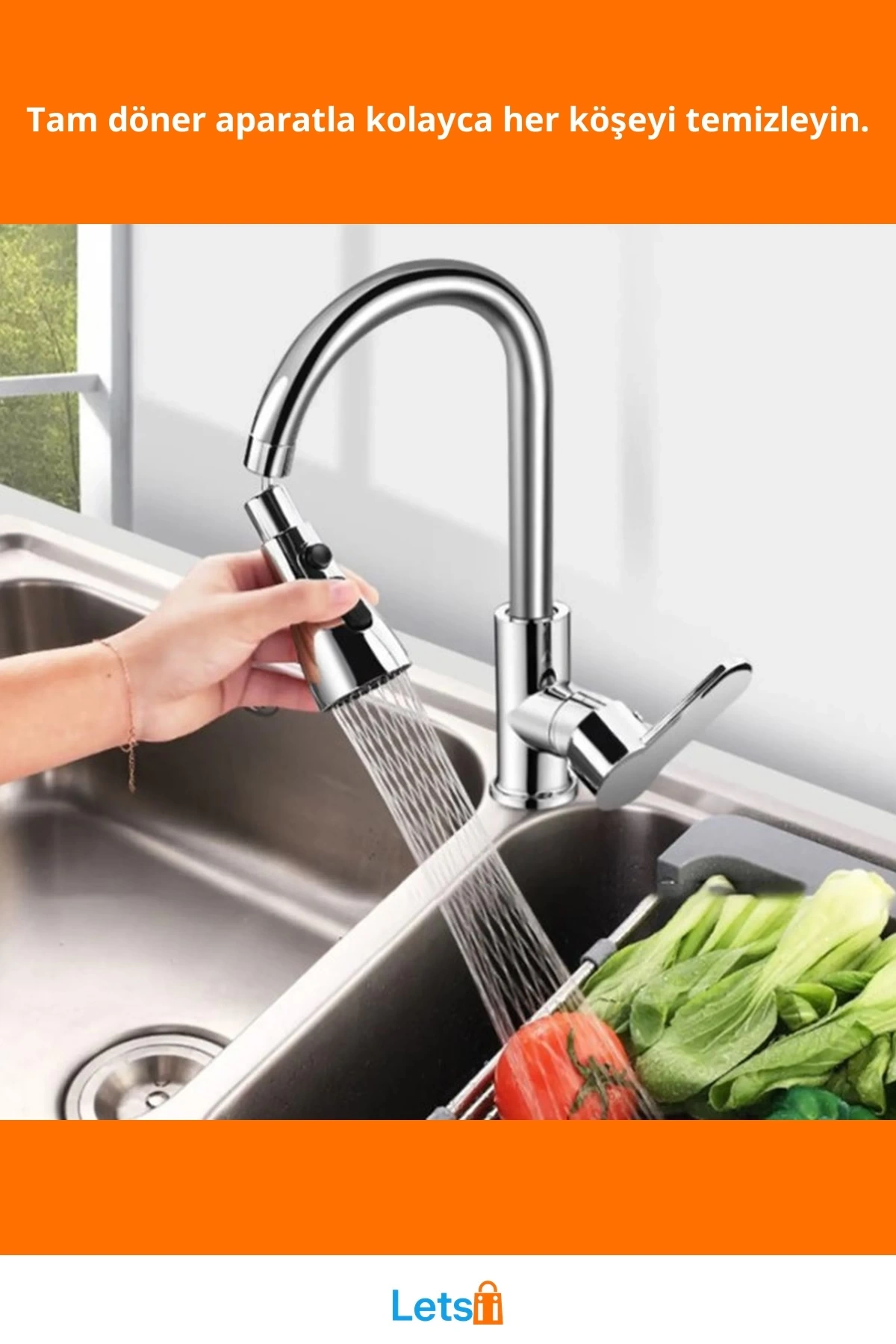 Metalik Musluk Başlığı, üç farklı su akış fonksiyonu ile mutfaktaki işlerinizi kolaylaştırır.